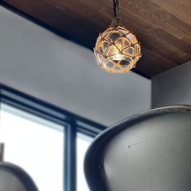 クリアのガラスに麻ひもをまとったランプ。 まるで海に浮かんでいる浮きのようなデザインの照明。西海岸ビーチハウスのような心地よい雰囲気をつくりだします。 シェードがガラスなのであたたかい光を遠くまで届けます。さらに壁・天井に映し出される麻ひもの影はお部屋を落ち着いた空間に演出してくれます。インテリアとして、ライトがついていない時でもお洒落なところもお勧めです。