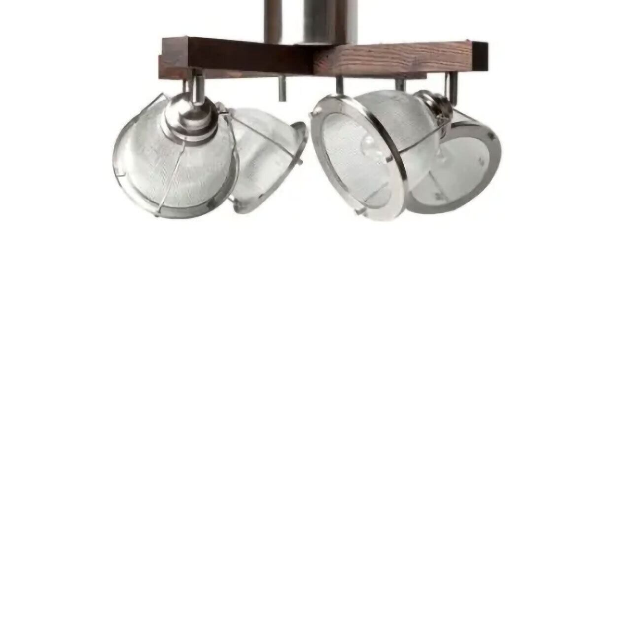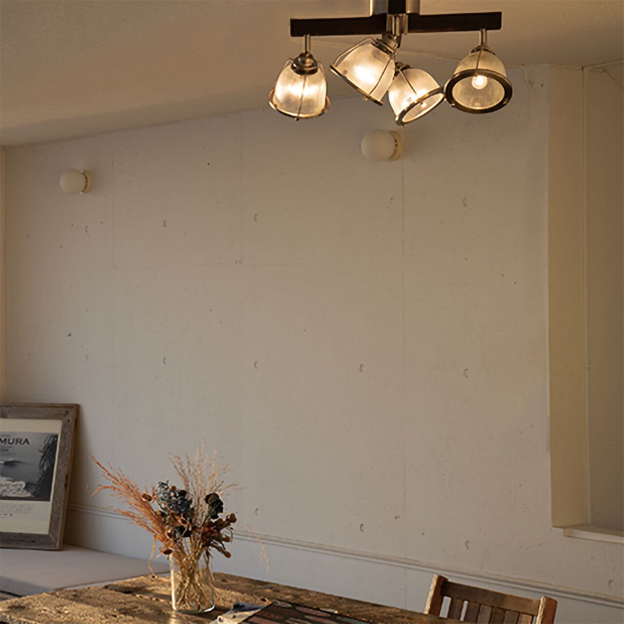 どこか懐かしいアメリカのダイナーレストランに飾ってありそうな照明です。古材風のウッドを使用しているので木ならではの温かみがあり、独特なヴィンテージ感を演出しています。4つのシェードはすべてアングルを調整できるので、好きな角度でご使用いただけます。ガラスシェードは、縦ラインにカットを入れる事で光を拡散させてくれます。異素材の組み合わせが絶妙でロングセラーの逸品です。