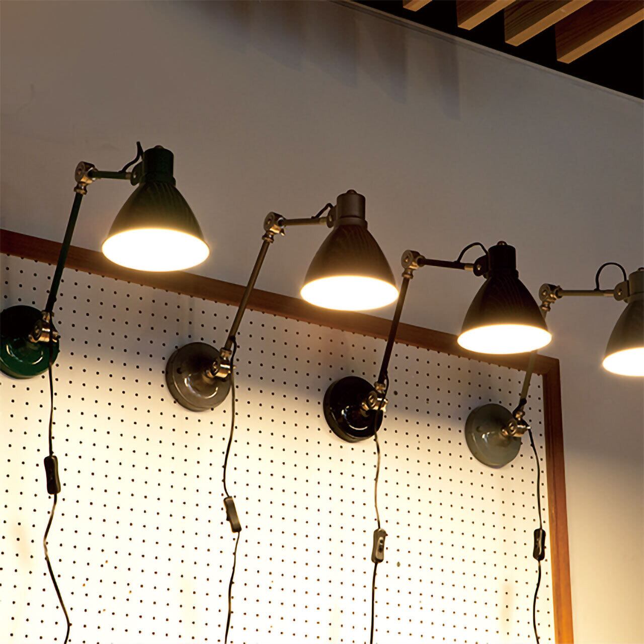 お部屋になじみやすいシンプルなデザインの壁付け用の照明です。壁付けタイプは少々抵抗があっても設置してみると一気に各上のインテリアに仕上がります。温かみあるシェードと無駄を削いだ工業的なスチールアームが特徴です。可動域が大きいので壁に固定しても多様な向きにて使用できます。