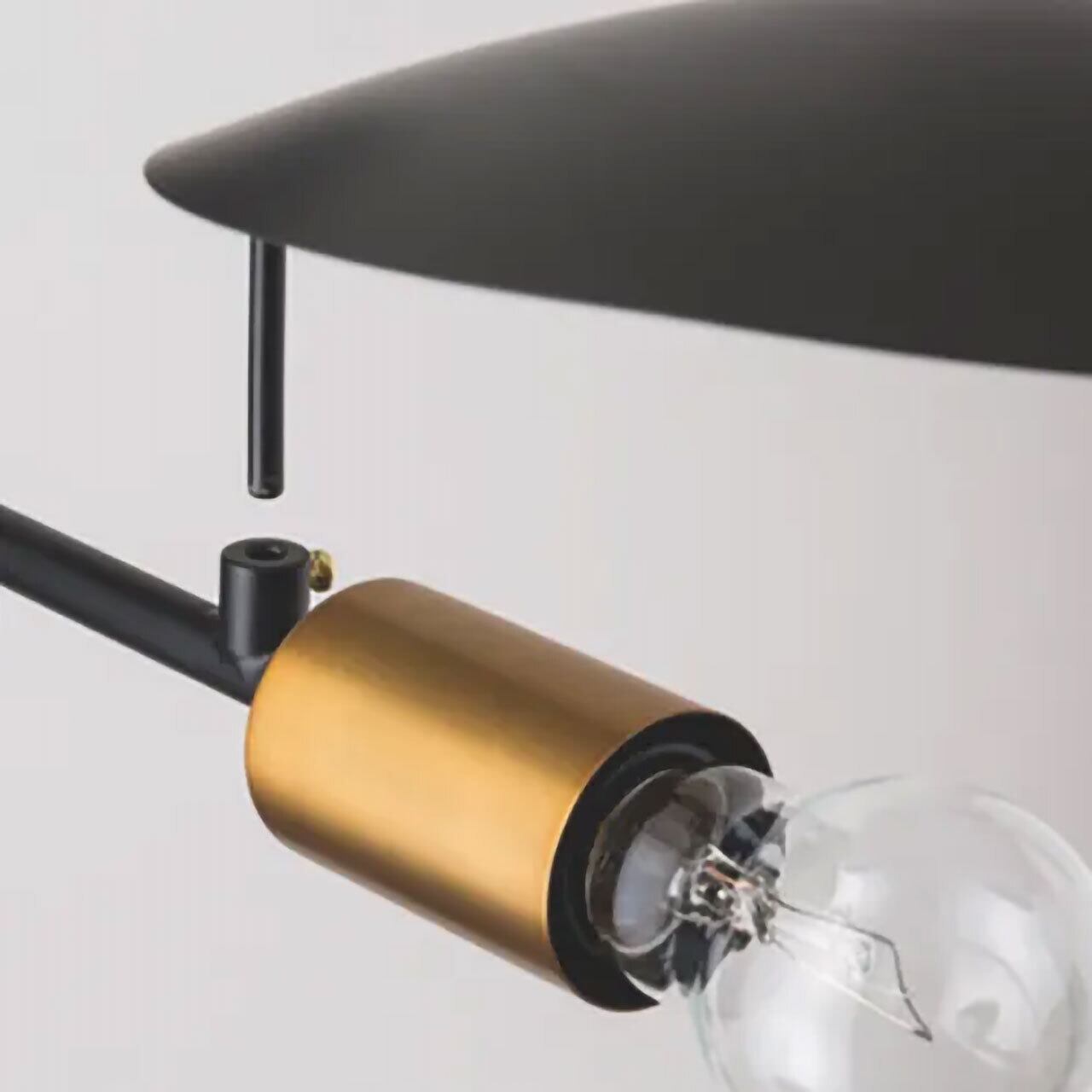 マットブラックの塗装に真鍮のゴールドが印象的で、スタイリッシュなフォルムが電気をつけていない時間も、インテリアの一部としておしゃれな空間を演出してくれます。