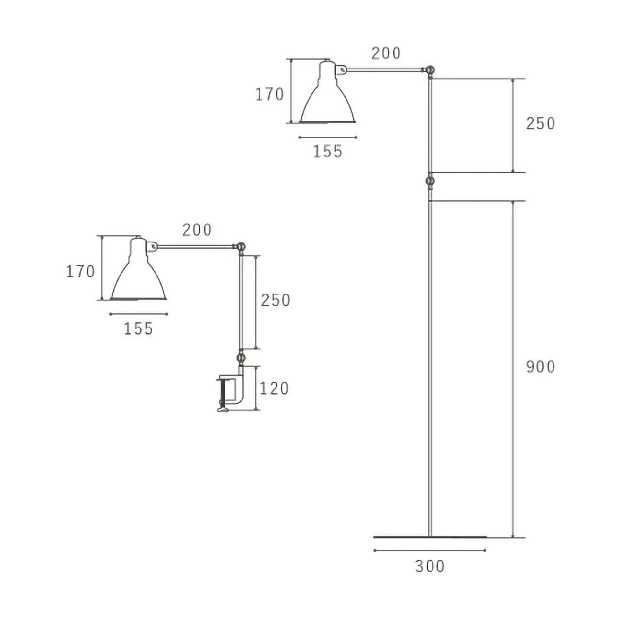 ■サイズ:φ150 × H170 mm/ (ベース)φ300 mm/ (ア-ム) 200+250 mm/ (支柱) 900 mm ※フロアランプ使用時の下部支柱の長さ/ (コード)2500 mm