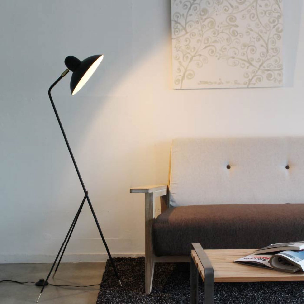 ディクラッセのロングセラー「アルル デスクランプ」に、日本ではまだ少ない、ソファ用のフロアランプとしてデザインを加えました。シェードは角度調節可能なので、ソファで読書などをする際に近くに置いて手元を照らしたり、壁や天井側に光を向けて、間接照明としてお使いいただくことが出来ます。