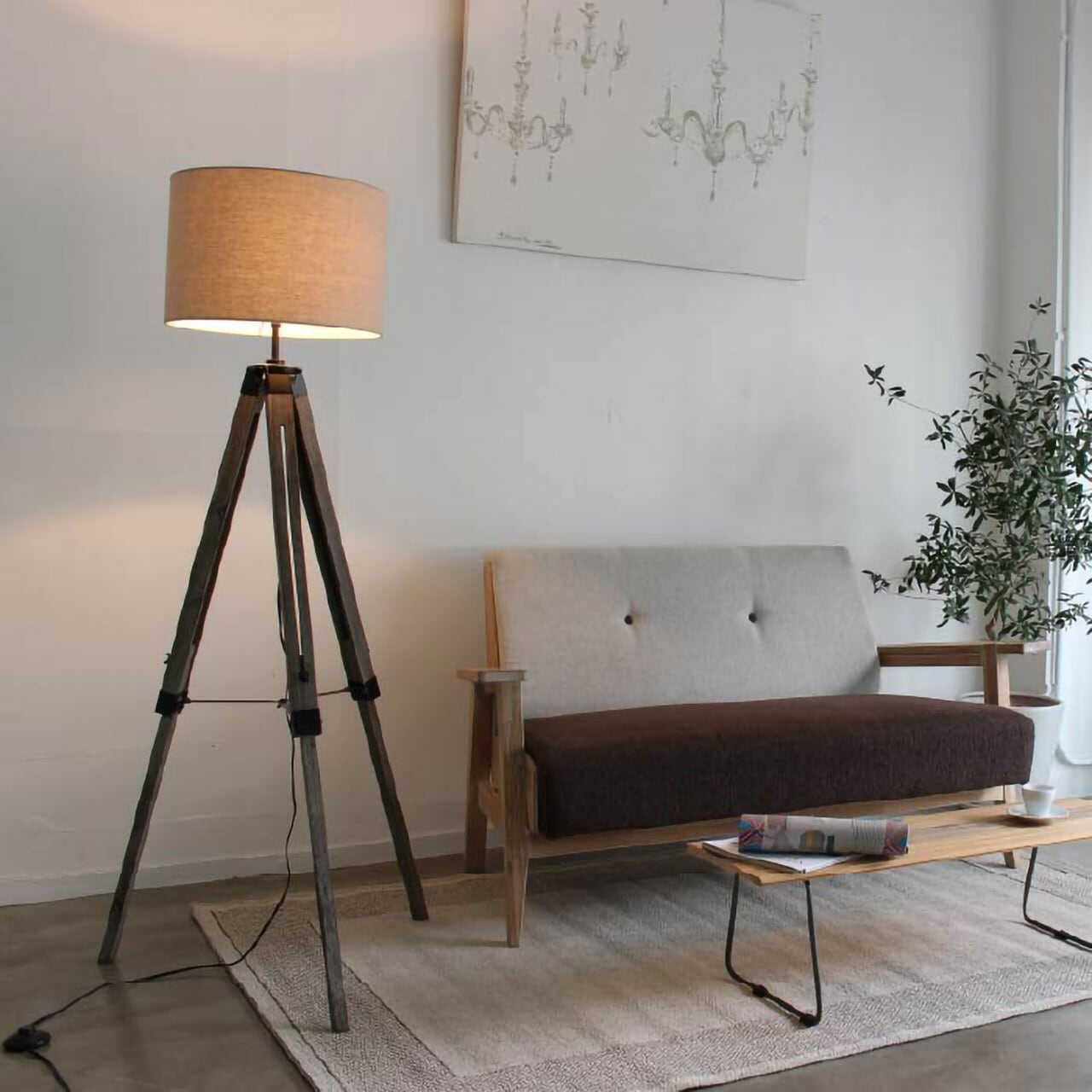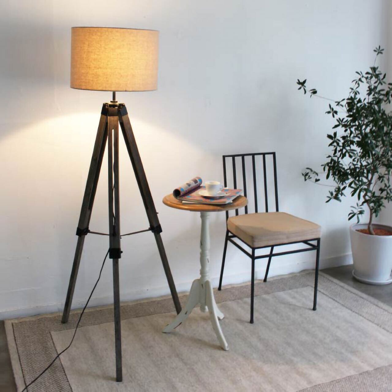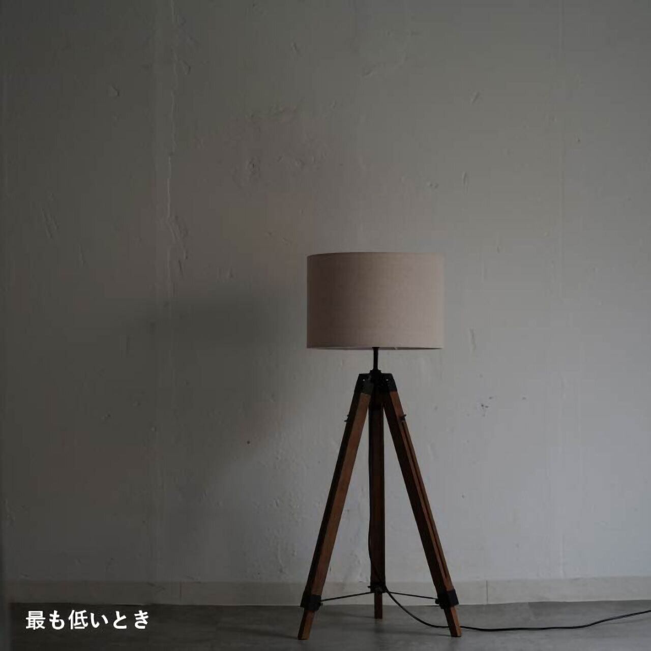 ビンテージ調の家具や雑貨が広まる中、同調のテイストに上品さも兼ねそなえたフロアランプ。イーゼルのようなデザインの脚部には、まるで長年使用してきたような味わい深い雰囲気が漂います。簡単に高さ調節をすることができるので、本を読む時などはソファの横に置いて手元を照らすことが出来ます点灯すると光が上下に広がり、影を創りだすので、お部屋の天井や壁に立体感と奥行き感が生まれます。間接照明としてお部屋を照らしたり、部屋の灯りを落としてゆったりと過ごす時間におすすめのランプです。