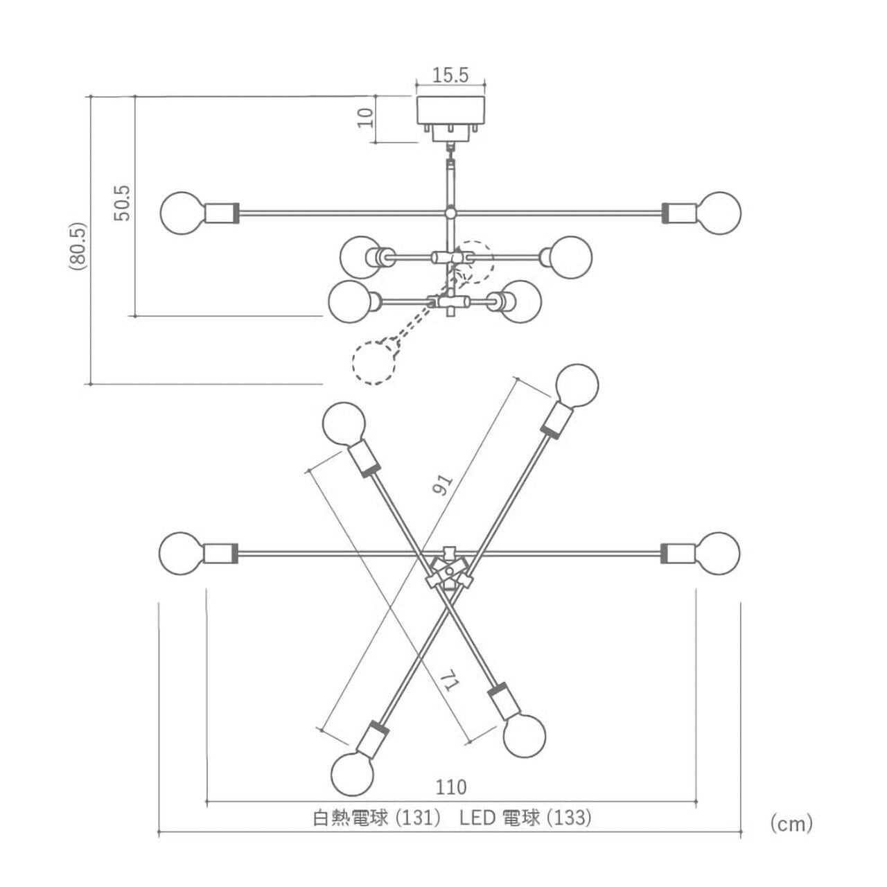 ■付属電球:LED電球:E-26 6.5W 800ルーメン(白熱60W相当)、2700ケルビン ボール球 G95(クリア)×6