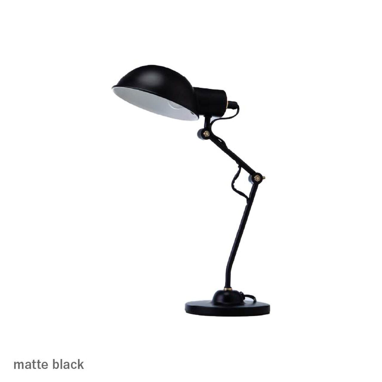 金属の質感を生かした風合いの、レトロなインダストリアル系デザインはビンテージ調のお部屋にもモダンスタイルにも合わせられます。シェードとアームは角度調整が可能で、光を当てたい場所に向けられる、使いやすさを考えた設計です。場所を取らない省スペース型で、デスク周りだけでなく、ベッド脇のサイドテーブルなどにも置ける、使いやすいサイズ。お休み前の読書灯としてもおすすめです。