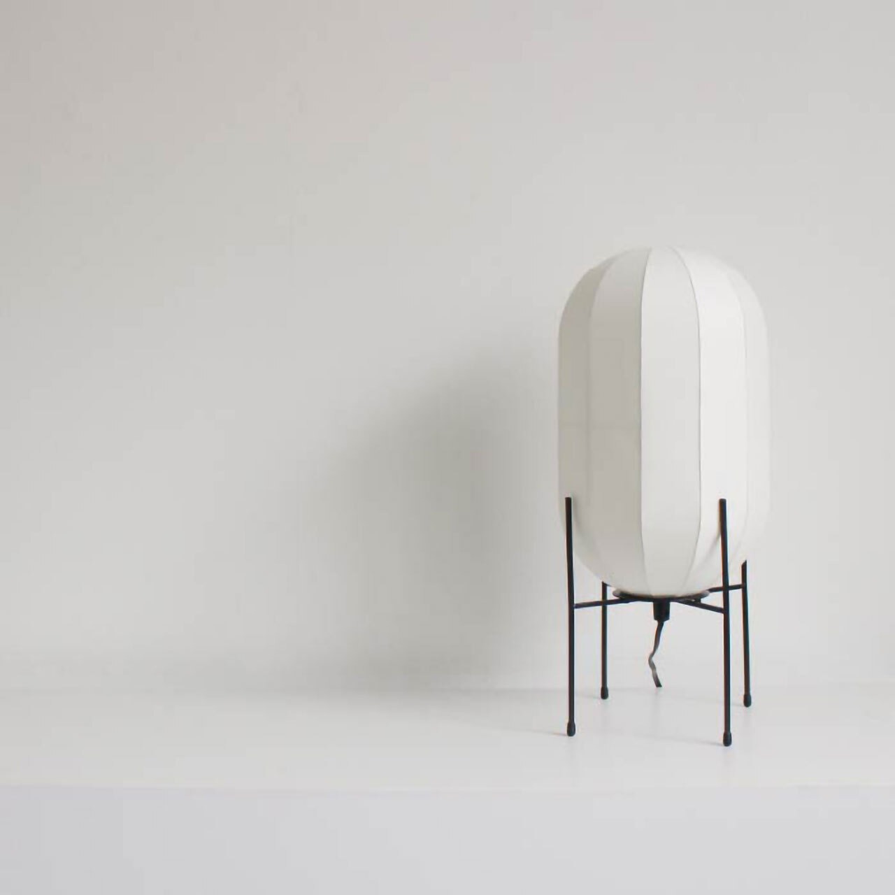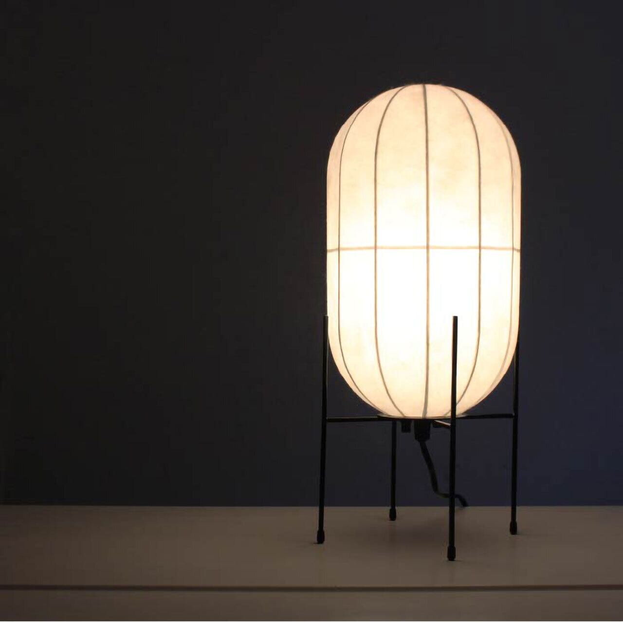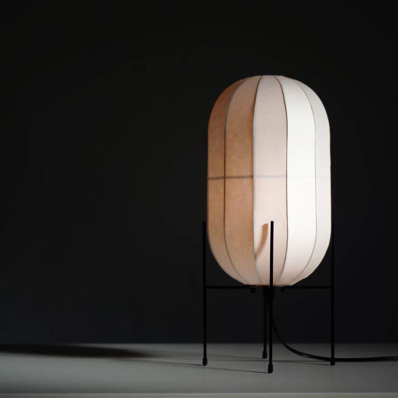 商品名の「OH」は、繭の形をしたシェードの「O」とベースの形の「H」から名付けました。シェードの美しい曲線と質感を引き立てるよう、ベースはシンプルな角棒だけでデザインされています。"
