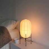 そんな繭をモチーフに、伝統ある越前和紙を用いて柔らかい明かりをつくりました。「和モダン」に仕上げたデザインで和洋どちらの空間にも馴染みます。寝室でのお休み前の灯りやリビング、和室(客間)などにおすすめです。本製品には歴史のある日本の伝統工芸「越前和紙」を採用。1500年の歴史を持ち、その技術が継承されてきた越前和紙は「日本三大和紙」として知られています。太くて長い繊維が絡み合い、あたたかみのある生成色に仕上がった越前和紙は、繭の繊細な美しさとどこか通じるものを感じて採用しました。様々な工程を経て丁寧に作られた越前和紙は、表面のなめらかな光沢と高い品質が特徴です。灯りをつけると、和紙の繊維が透けて落ち着きのあるオレンジ色の光と陰影のコントラストが空間をドラマチックに演出します。また、養蚕業や和紙作りのような伝統的な日本のものづくりに敬意を示し「Made in Japan」にこだわりました。日本の伝統和紙を使用するだけでなく、張り合わせも職人の手作業で行われています。