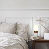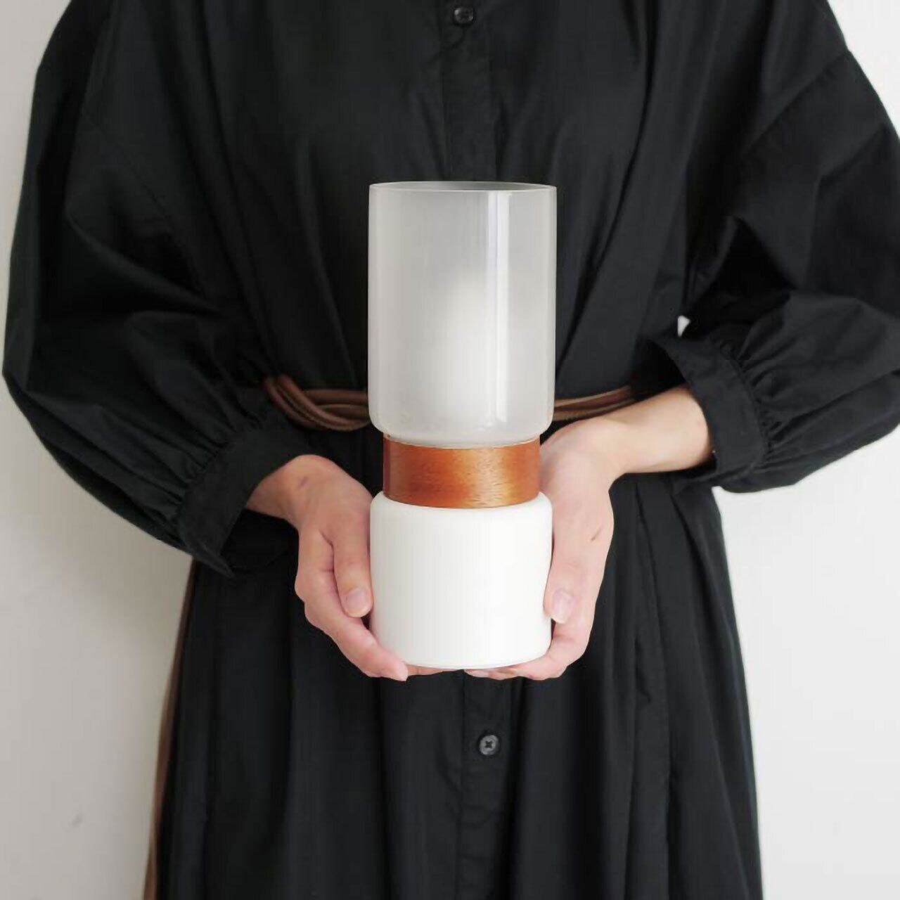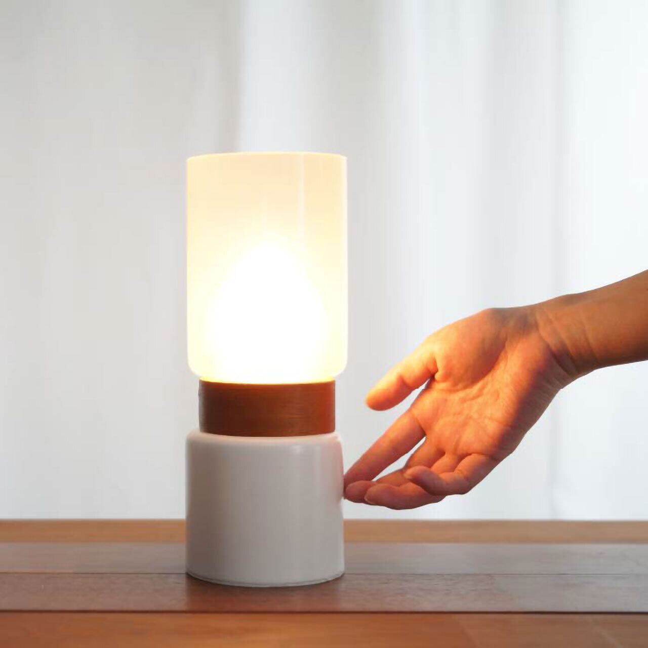 ガラスと木とスチール素材を組み合わせ、重厚感がありながらスリムな形で場所を選ばないナイトランプ。サンドブラスト仕上げのフロストガラスを透したオレンジ色の灯りが心地よい眠りにつくまでの寛ぎの空間を、優しく照らします。小ぶりなサイズで、ベットサイドのナイトランプや、リビングルームのちょっとした灯りとしてお使いいただけます。リニューアルした本品は電源のON/OFFがタッチセンサーになり、ナイトランプとしてより使いやすくなりました。