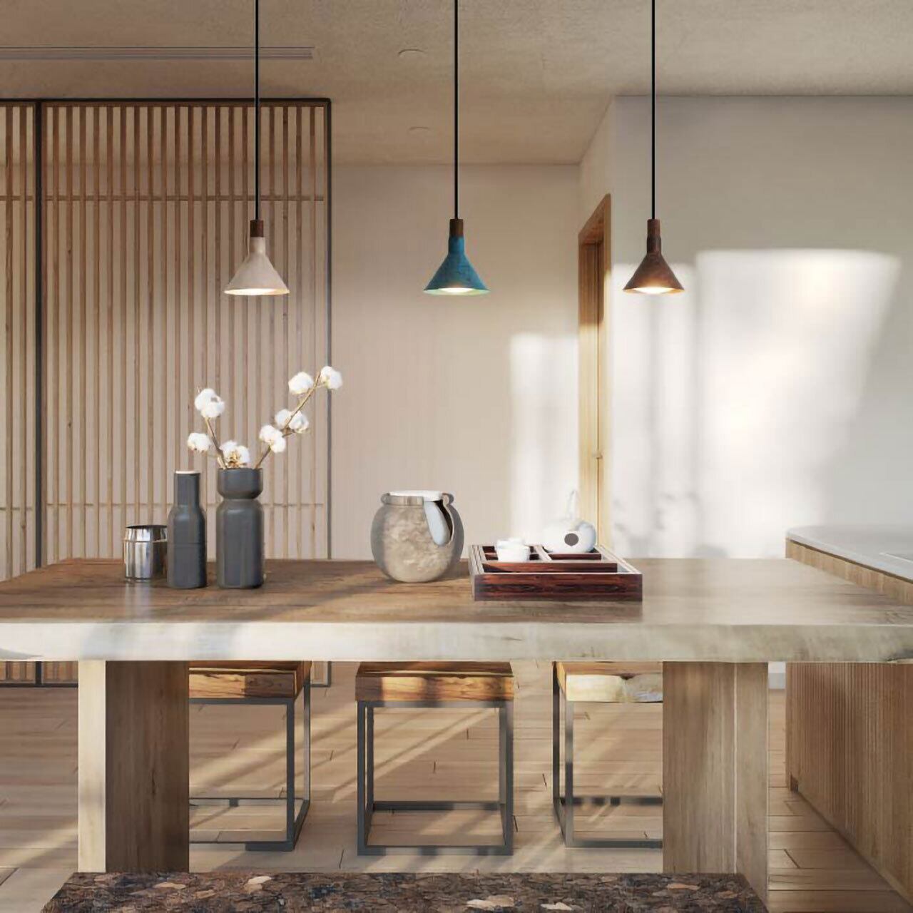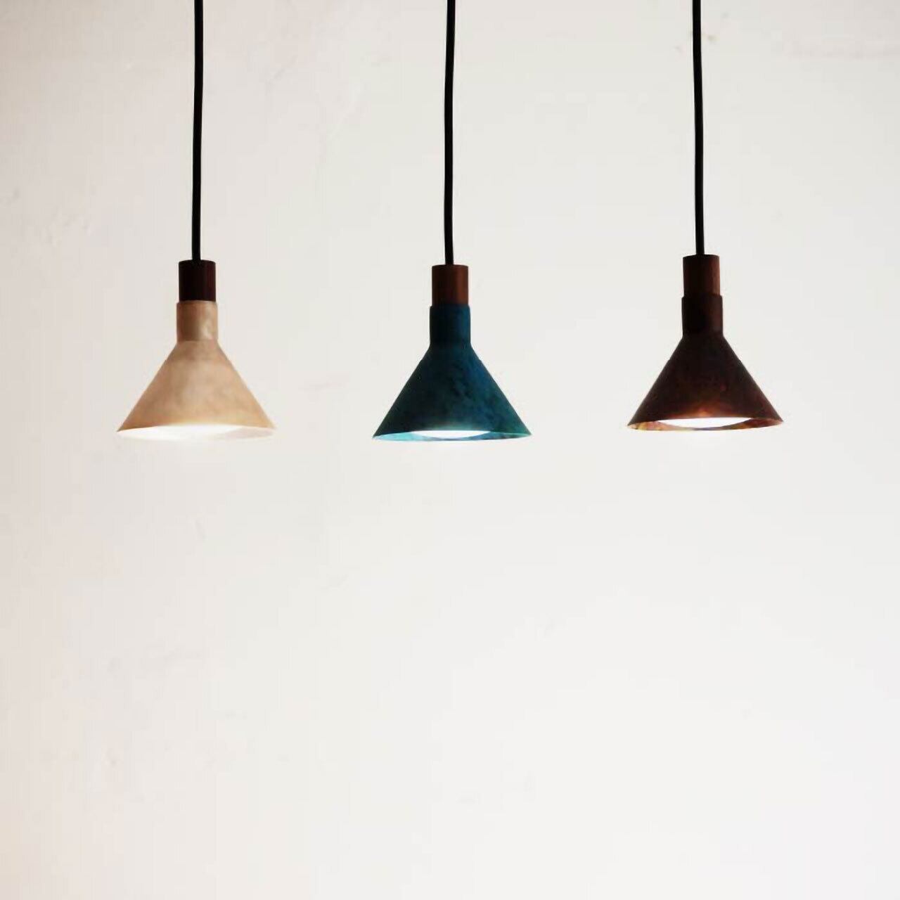 シンプルなデザインと質感の良さで評価されているエポカペンダントランプに新しいカラーを追加しました。モメンタムファクトリー・Oriiとのコラボレーションによって実現したカラーは銅や真鍮が持つ腐食性を利用し、糠焼と呼ばれる、ぬかを塗って焼き付けたり、薬品や炎をコントロールして、鮮やかな色彩を発色させる伝統技術を用いたもの。独特のムラや進行する錆が相まって唯一無二の表情を見せます。単灯でも存在感あり、同色あるいはカラー違いで多灯吊りも魅力的。ジャパンディや北欧テイストにも合わせやすいデザインです。