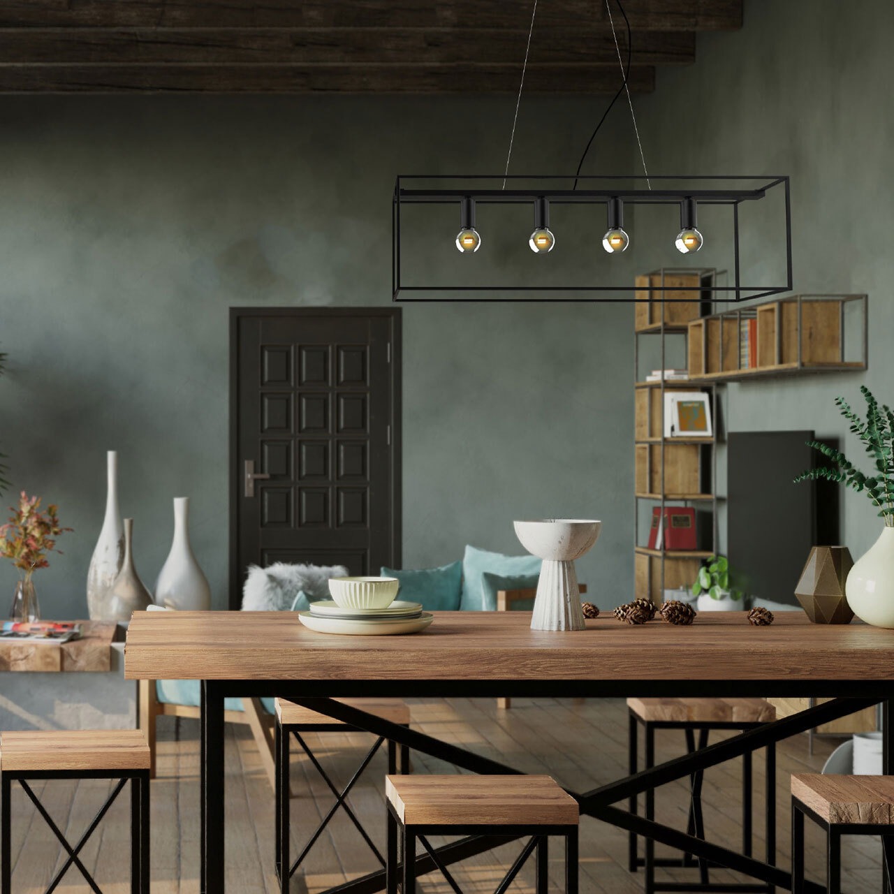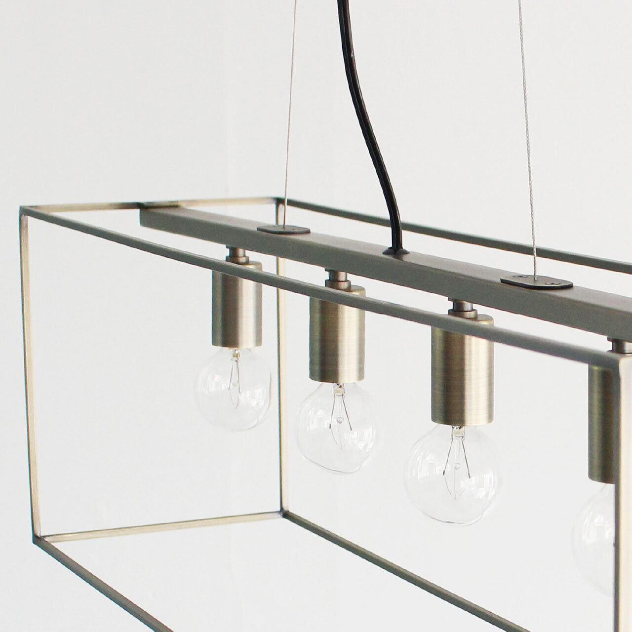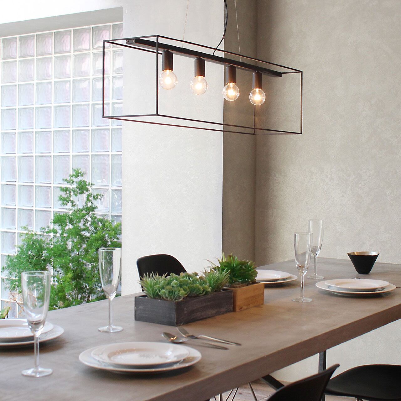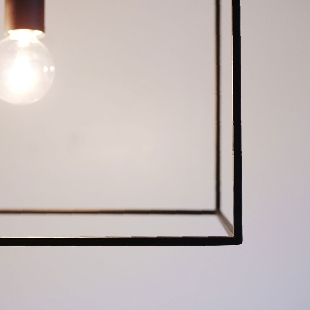 部屋の風景を切り取る。明かりを囲むスチール製のフレームは部屋に存在する家具や壁紙などの背景を切り取るかのよう。立体感のある大きめのシェードですが、細いフレームなので重さを感じさせず、空間になじみやすいデザインです。25ワットの電球が4個ついた、明るめのペンダント。ダイニングテーブルの上や、リビングルームに合わせるのがおすすめです。