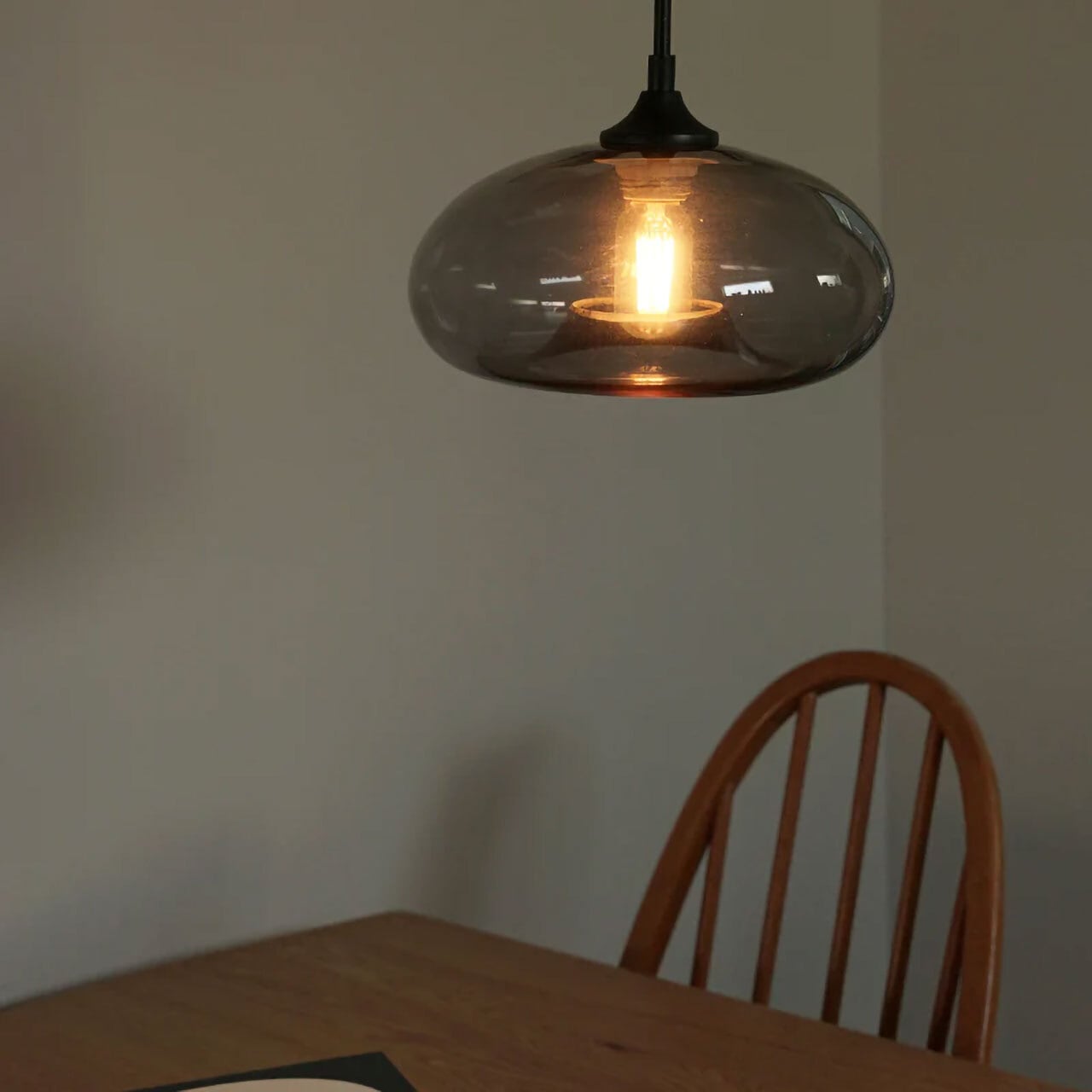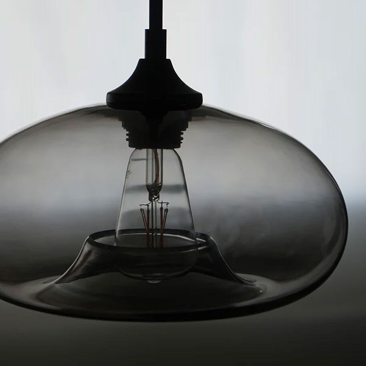 ほのかなグレーの色味はシックで、マンションや現代的な建築、大人っぽい雰囲気のインテリアに合わせやすいデザインです。電気をつけていない時も器のように器のように美しいシルエットは、住宅はもちろん、店舗照明としても最適です。ガラスのシェードは電球から放たれる光を遮らず、全方向を照らします。光源(電球からの光)が目に入り眩しく感じられる事もあるため、場所や高さのバランスを考慮しながら設置をして下さい。