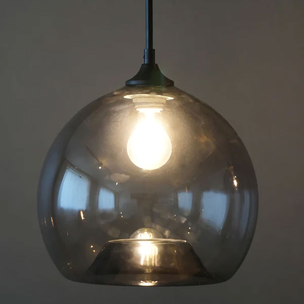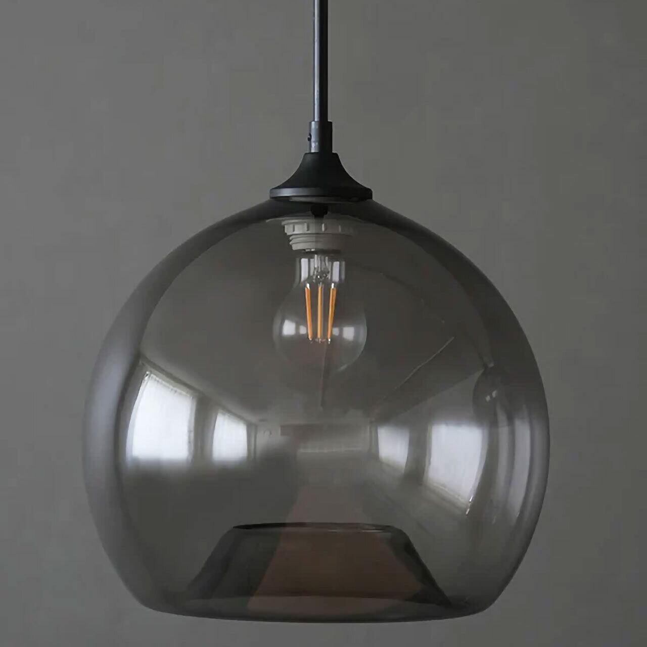 ほのかなグレーの色味はシックで、マンションや現代的な建築、大人っぽい雰囲気のインテリアに合わせやすいデザインです。電気をつけていない時も器のように器のように美しいシルエットは、住宅はもちろん、店舗照明としても最適です。ガラスのシェードは電球から放たれる光を遮らず、全方向を照らします。光源(電球からの光)が目に入り眩しく感じられる事もあるため、場所や高さのバランスを考慮しながら設置をして下さい。