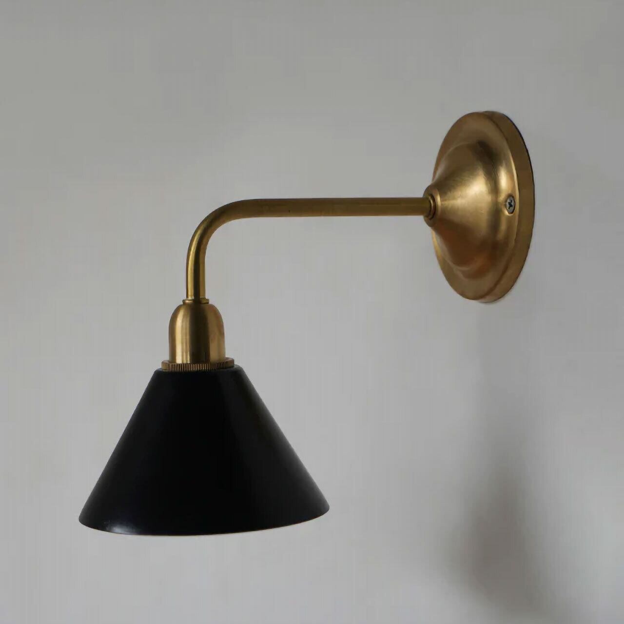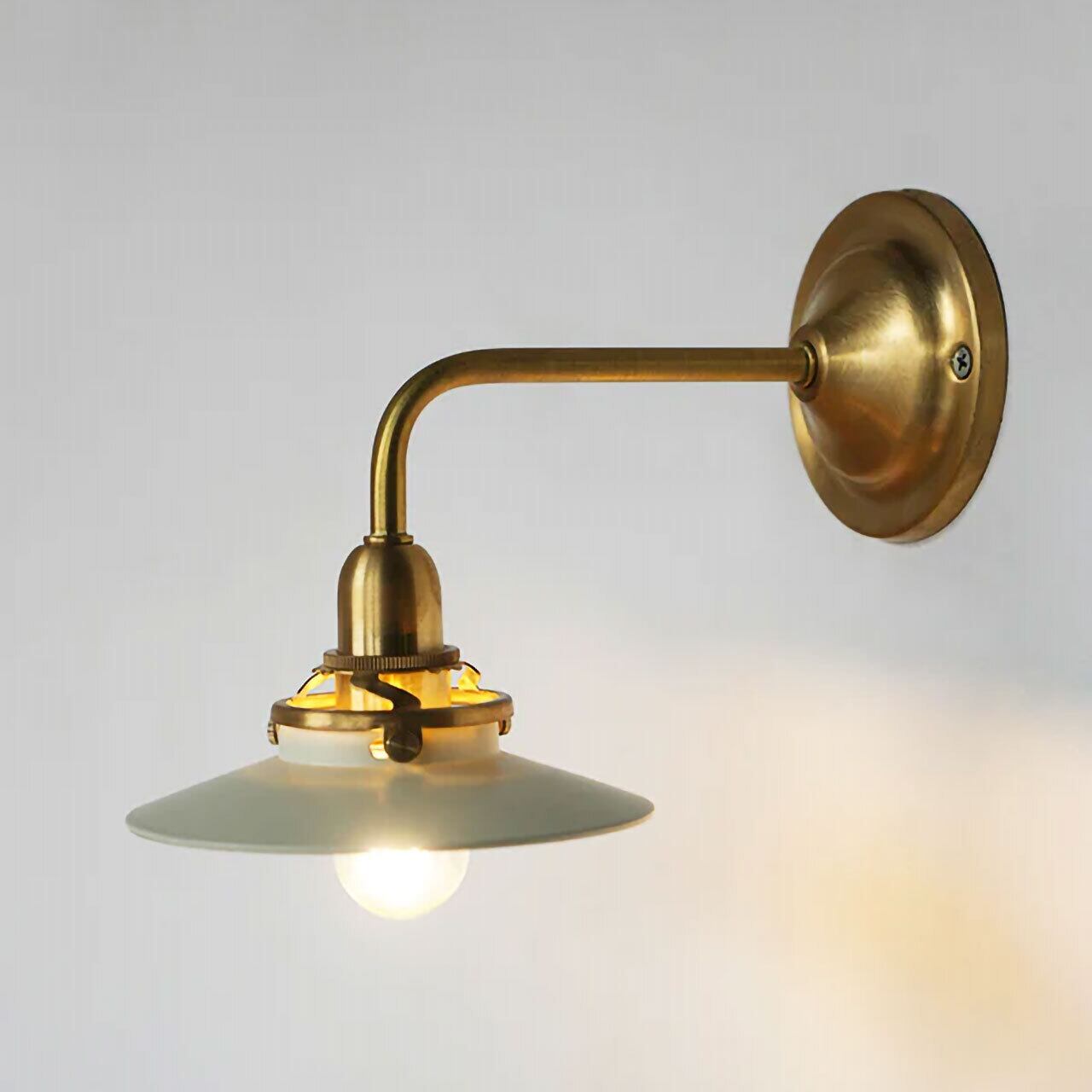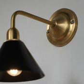 シェード部分は金属の板を伸ばして成形する”ヘラ絞り”という技術を使い、熟練の職人が一点一点手作業で製造しています。ぽってりとした厚さ約3mmの真鍮シェードはフチ部分に丸みを出し、金属なのに不思議と柔らかい空気感を持つシェイプに仕上げました。内玄関や廊下などに設置すればその家のアイコン的な存在となり、洗面所やお手洗いでは内装に合わせてインテリア性を高められます。他にも、リビングの間接照明や寝室のナイトライトとしてなど、”壁から近い”からこそできる明かりの演出をお楽しみ下さい。