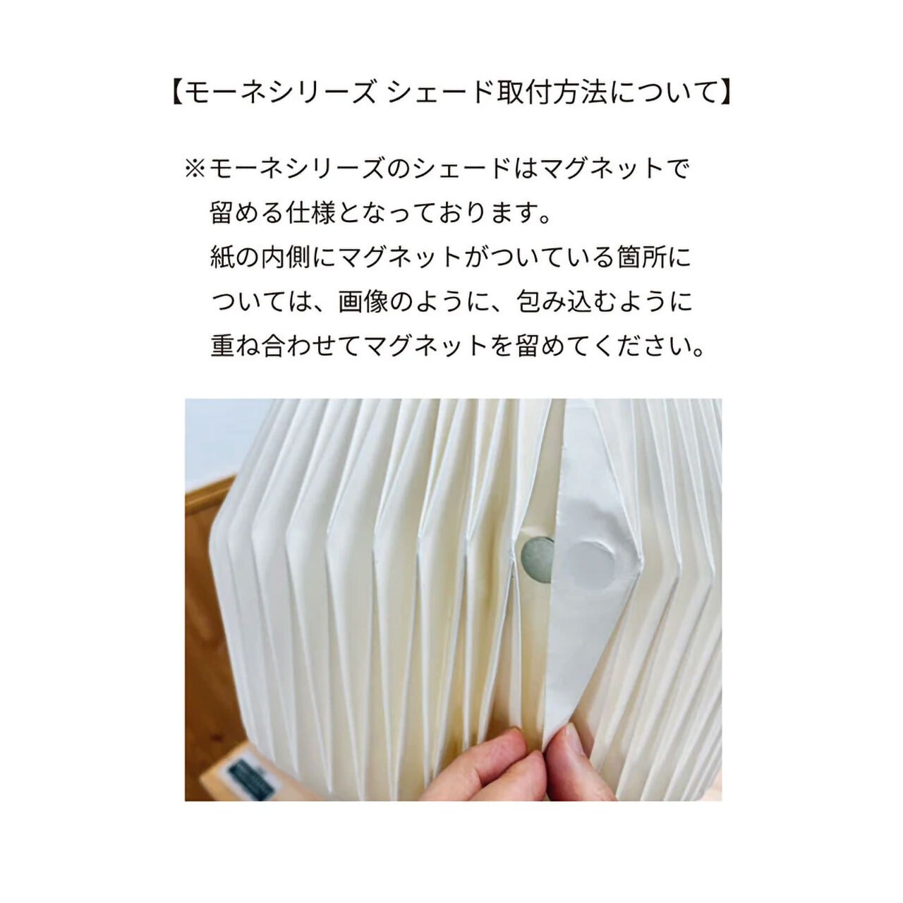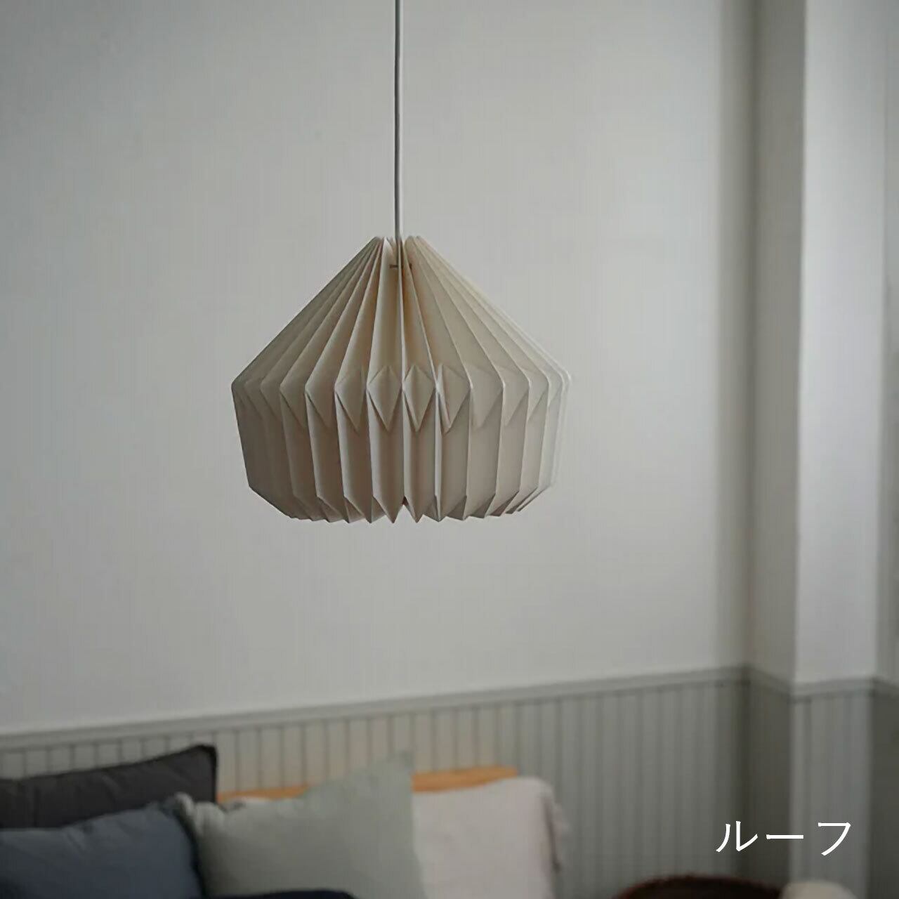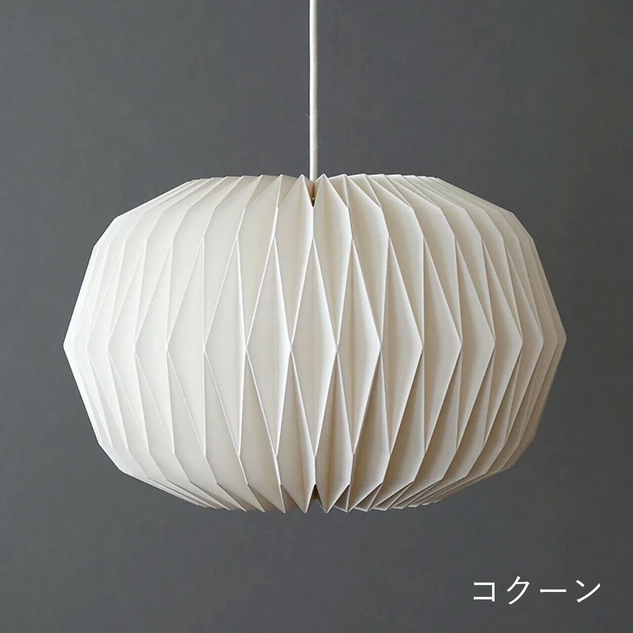 「月」を意味をする言葉「MANE(モーネ)」。モーネシリーズは紙を手で折り上げて、幾何学的なフォルムに仕立てたペンダントシェードです。オフホワイトがかった白色の紙シェードは、見た目や手触りはしっかりしながらも独特の温もり感があります。軽くて割れない素材なので、ダイニング・リビング・寝室など様々な場所でお使い頂けます。「フルムーン=満月」「コクーン=繭」「ルーフ=家の屋根」といったシルエットのバリエーションがございます。