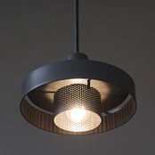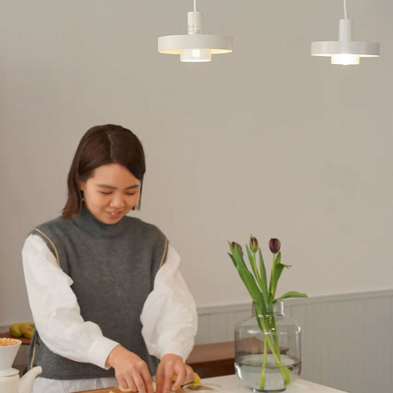 パンチングアイアンをポイントにした照明シリーズのKT punching light。シェードに使用する事でモダンかつ個性的な印象を与え、さらに光が適度に抜け、眩しさを低減する効果もあります。ダイニングやキッチンカウンターに使用する場合は、吊るす場所に合わせて1〜2灯を設置するのがおすすめです。店舗や事務所などの商業空間にもよく似合う、上質なあかりです。