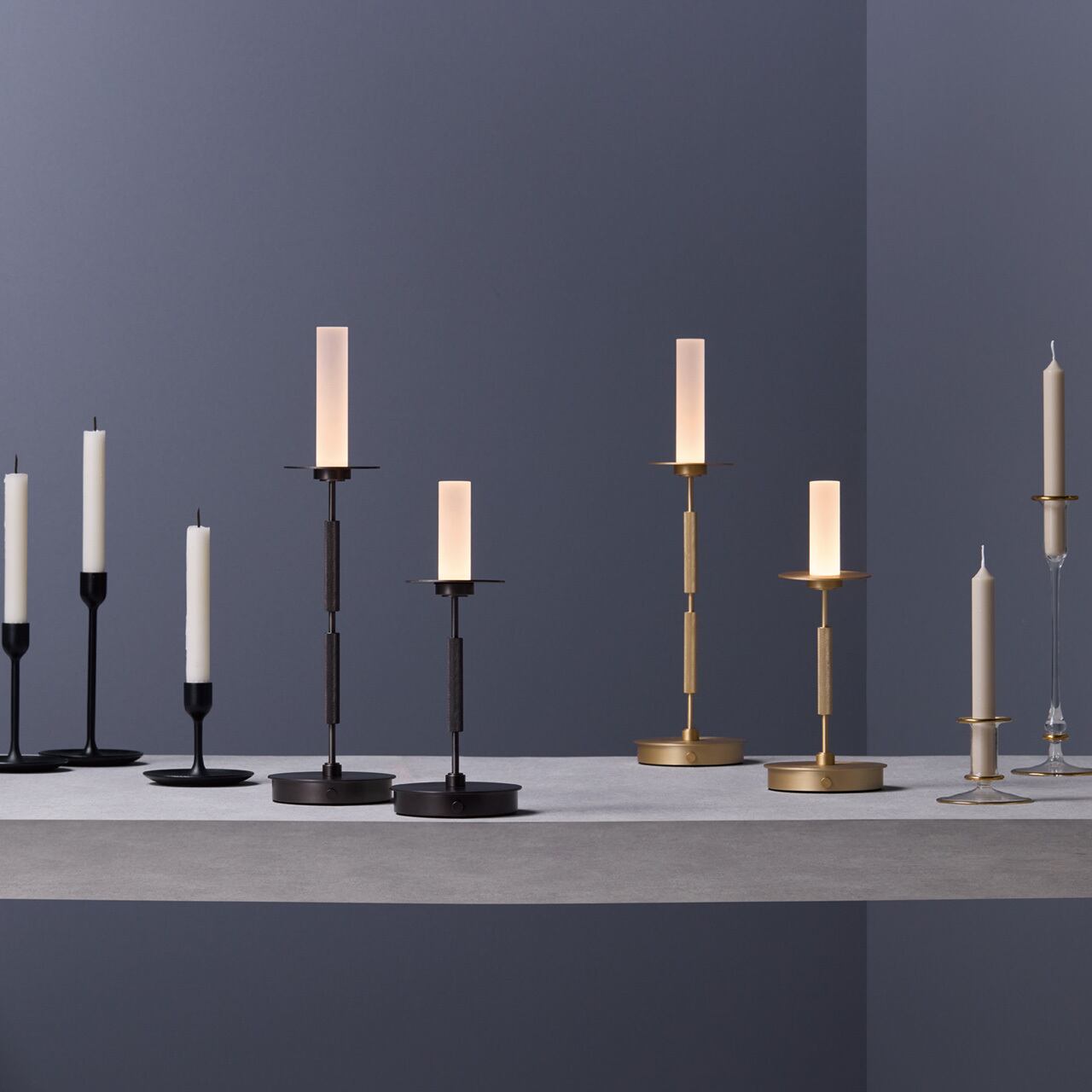 内蔵LED光源からアクリルスティックを通してロウソクのように光が放たれる。ベースは燭台を模した、まるで現代版のキャンドルライト。実際のロウソクと異なり、シーンや気分に合わせて「暖色」「自然色」「白色」の調色と無段階の明るさ調整(調光)が可能なのはLEDのなせる業。ご自宅の様々な空間をはじめカフェやレストラナンなど商業用途にも最適。充電式で場所を選ばず設置できるのも嬉しい機能。S/Lサイズの大小や、同サイズで複数設置すると一層趣きある雰囲気を演出します。