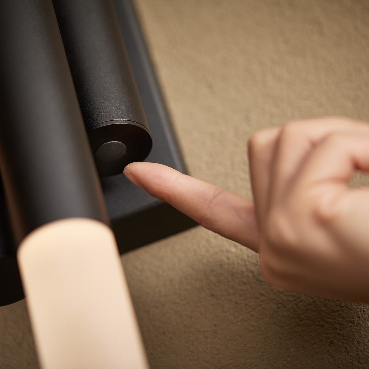 燭台をイメージした土台にスティック型のアクリルLED光源を備えた「Candela」に壁面取付タイプが仲間入り。ランダムな配置、方向で幻想的な空間を演出します。左右2タイプのモデルが用意されていますが、シンメトリー関係なくお好みでお選びいただいても結構ですし、横向きで設置いただいても構いません。また、スイッチは操作フィールの優れたタッチスイッチ。ON/OFFだけでなく、長押しで無段階調光も可能で、点灯時にはスロー点灯する機構も内蔵し、雰囲気ある演出になっています。ベッドサイドをはじめエントランス、廊下、狭小スペースなど多様なシーンでワンランク上の空間演出が可能です。