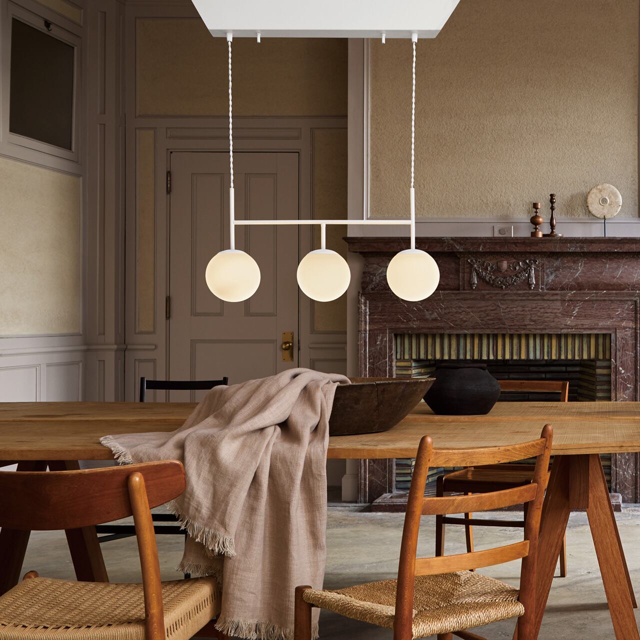 ふわりと浮かぶような雰囲気の球体が柔らかな空間を演出する「SB pendant light」。落ち着いた質感のフロストガラスを通して穏やかで柔らかな光を放ちます。ミニマルなデザインにこだわり、スリムなシェイプに浮遊感を生む球体の組み合わせが秀逸。シンプルスタイルはもちろん、アーバンスタイルから和モダンといった多様な空間にマッチします。1灯タイプには(S)と(M)サイズのシェード、2灯タイプには(M)サイズシェード、3灯タイプには(S)サイズシェードをラインナップ。設置場所に応じて揃えて統一感を出すのもオススメ。