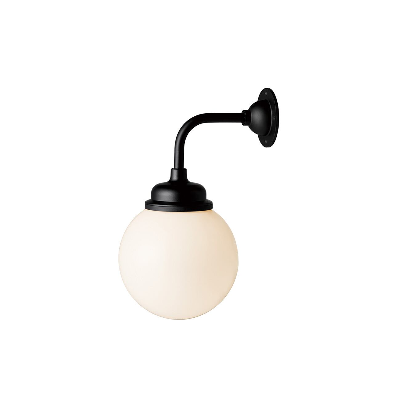 ガラスグローブを使用した人気シリーズ「Bliss」に屋外仕様が仲間入り。シェードデザインやサイジングはそのままに、自宅玄関の軒先や店舗エントランス、施設のファサードなどにも大変オススメな雰囲気あるアームタイプのウォールランプです。しっとりした乳白ガラスから灯る優しい光が特徴的ですが、アームやベースは意外なほど堅牢的な造りでドッシリと重厚感があり、末長くお使いいただけます。ベースのカラーはシックなブラックと素材の味わいが魅力なブラスの2色からお選びいただけます。