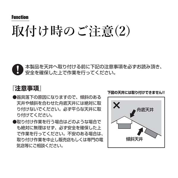 ※器具落下の原因となりますため、舟底天井や傾斜天井へはお取り付けいただけません。