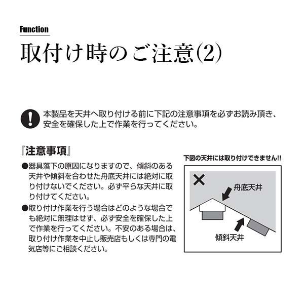 ■取付に関するご注意事項:※本品は角型引掛シーリング、丸型引掛シーリング、丸形フル引掛シーリング専用です。ローゼット型器具にはお取り付けいただけません。あらかじめ天井に備わっている器具の種別をご確認ください。
