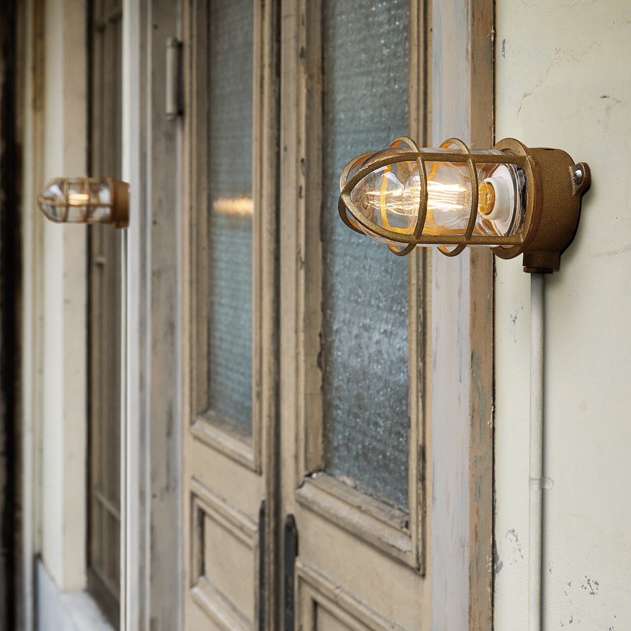 船舶用照明として実際に用いられている耐久性・防水性の高い本物のパーツを使ってデザイン〜製品化した「Beach house」シリーズ。ズッシリとした真鍮製のガードや、BODY本体の重厚感・堅牢さが醸し出すレトロ感とマリン仕様独特の雰囲気はインテリアとしての存在感も抜群、真鍮ならではのエイジングも楽しみのひとつです。お部屋のインテリア照明やカフェやショップ、ホテルなどの施設照明としてはもちろん、防雨仕様ですので街灯や門灯・外壁等のエクステリア照明としても大変おすすめ。シリーズを通じてブラス色、シルバー色の2カラーからお選びいただけます。