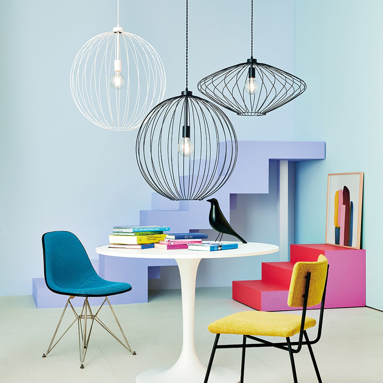 ワイヤーが織り成す曲線が美しいコンテンポラリーなペンダント照明「Allium-pendant light」。シンプルな見た目は一見洋風なインテリア向けの印象ですが、和室や和モダンテイストの空間にも意外なほどにマッチします。カラーはブラック、ホワイトの2色展開で丸型デザインの「Allium-pendant light 1」と菱形デザインの「Allium-pendant light 2」がございます。お部屋をシックにまとめるアートピースを是非お楽しみください。