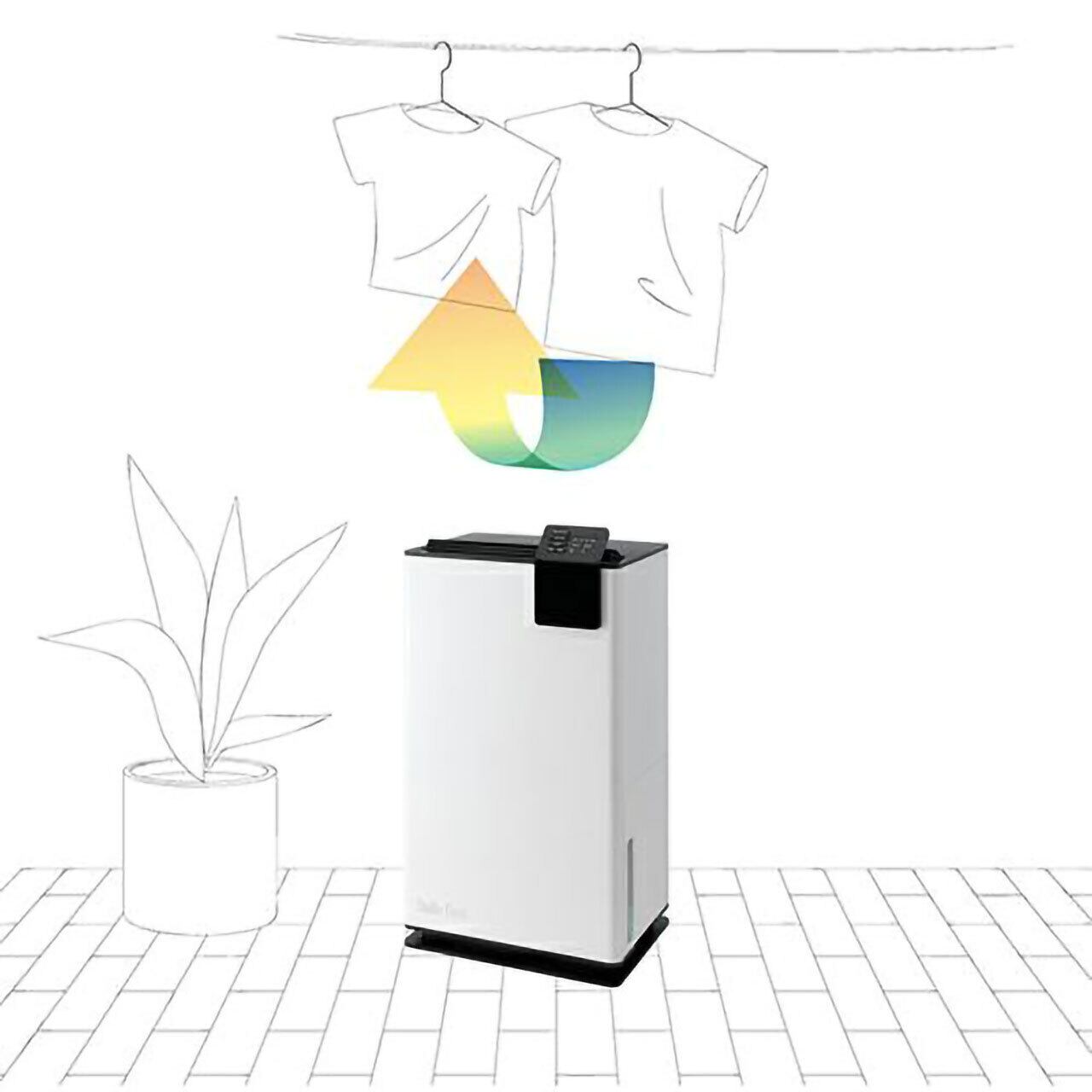 スイスで生まれたデザイン除湿乾燥機。一般的にエアコンの除湿と同じ方式で、空気を冷やして水分を取り除くコンプレッサー方式。コンプレッサーを通して冷媒(フロンガス)を循環させ、冷却器で湿った空気を冷やして湿気を水滴に変えます。除湿量が多いので湿気の多い季節でもパワフルに乾燥。コンプレッサー方式で1日4.5Lの強力除湿。冷却機で湿気を水的に変えて水分を取り除き、カラッと快適、カビやジメジメを抑制。湿気、カビ、結露対策に一年を通してご利用いただけます。部屋干しにも最適。雨の多い梅雨時や乾きにくい冬の時期に活躍します。自動湿度調整で過剰な乾燥を防止。一定の湿度保て、30〜80%の間でお好みの湿度を設定できます。風量も3段階の調節が可能。操作は簡単。湿度や風量などは全面上部スイッチで調整できます。風量を最大にすれば、その分除湿効果が期待できます。風の向きを規則的に変えて効果を高めるスイングモードや睡眠時を考慮したナイトモード、自動で霜取りを行う機能など豊富なメニュー。タンクが満水になるとお知らせ音で知らせてくれます。また、直接排水できる排水ホースも付属しており、用途に応じて使い分けが可能。