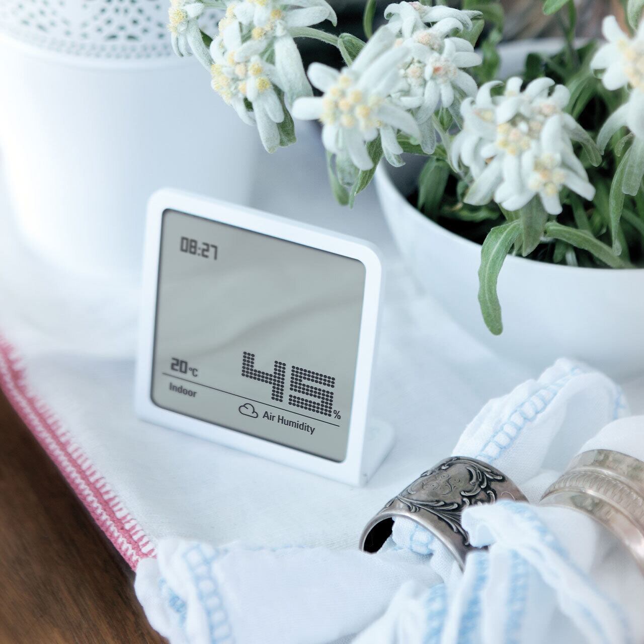 一般的に、室内の快適ゾーンは温度18〜28℃、湿度40〜70%とされています。肌に良いとされている湿度は60〜65%といわれ、湿度50%を下回るとお肌が乾燥し始めます。疲れ目の原因のひとつであるドライアイ予防には、湿度は少し高めが良いとされています。またカビは、有機物が存在し、室温20〜30℃、70%以上の湿度とよどんだ空気であるという条件が揃うと繁殖します。ダニは、一般的には室温25℃付近、湿度75%前後で活発に活動します。温度・湿度をチェック・コントロールすることで、室内を快適な空間にしましょう。