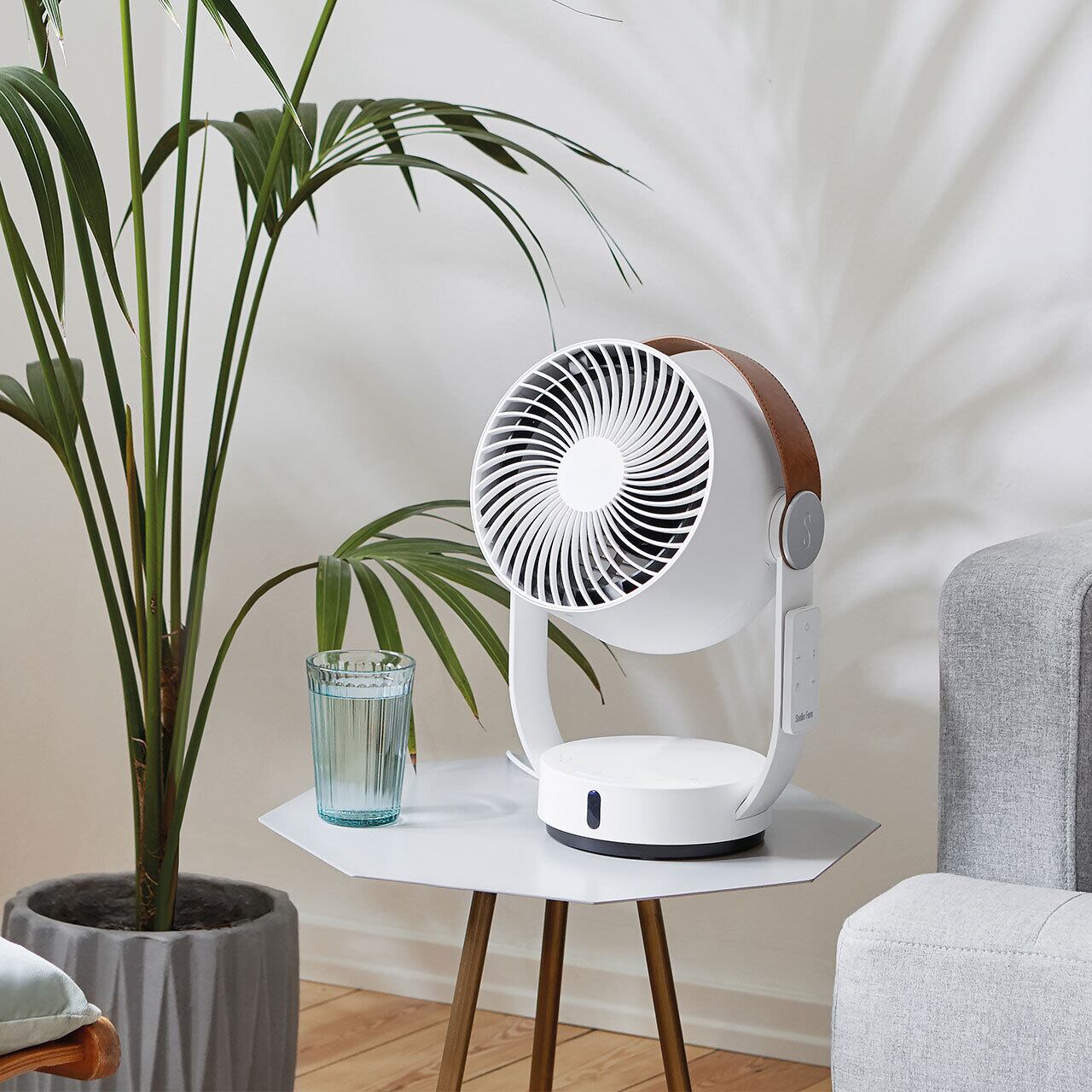 新たな風をお部屋に生み出す次世代3Dファン、Leo(レオ)サーキュレーター。上下左右にスイングし、最大8m先まで風を届けます。凹凸をなくした洗練されたデザインのタッチセンサー式コントロールパネルは、イラスト表示でシンプルでわかりやすく、操作も簡単です。持ち運びに便利なハンドルは、ヴィーガンレザーのスタイリッシュなデザイン。付属のリモコンは電池を入れることで、マグネットで本体に吸着する省スペース設計。1〜7時間のタイマー設定が可能です。上下左右の3D自動首振り機能、4段階風量コントロール、ナチュラルブリーズモード、タイマー機能など多彩な機能を搭載し、モーターにはDC方式を採用。左右60度、90度、180度の幅にて3段階の首振り機能。さらに上下に-5度から80度までの幅で首振りが行え、最大8m先まで風を届けるパワーと組み合わせて3Dに広範囲の空気循環が可能。冷暖房の効率も上がり省エネにもなります。