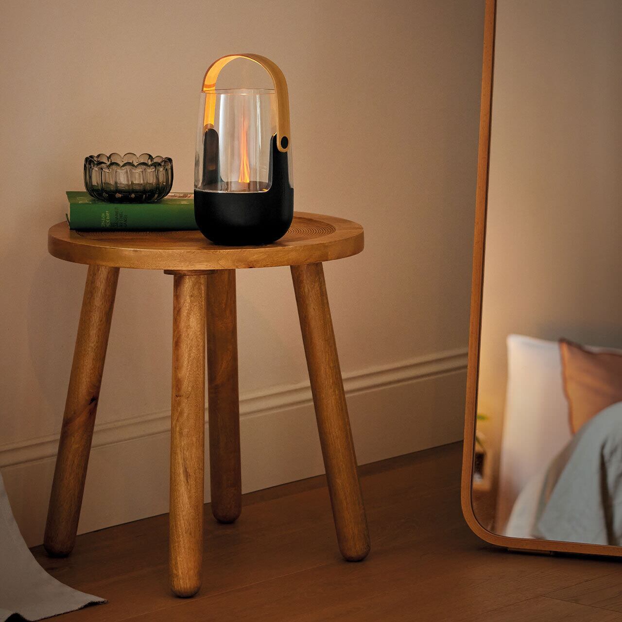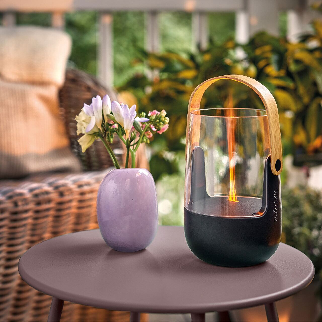 屋内外で使用できる、バンブーハンドル付のモバイル アロマ ディフューザー。調光可能なLED ライトにより、ミストを炎に見立てた演出で、視覚的にも揺らぎ効果によるリラックスを生み出します。充電式でアドレスフリー。本体上部のカバーを開けて簡単に給水ができます。最大約7時間可動し、IP44の防水規格で屋外での使用も可能。レモングラス、シトロネラ、ユーカリ、ペパーミント、ゼラニウムなど虫よけに適したアロマオイルを使用すれば天然由来の虫よけにも最適です。