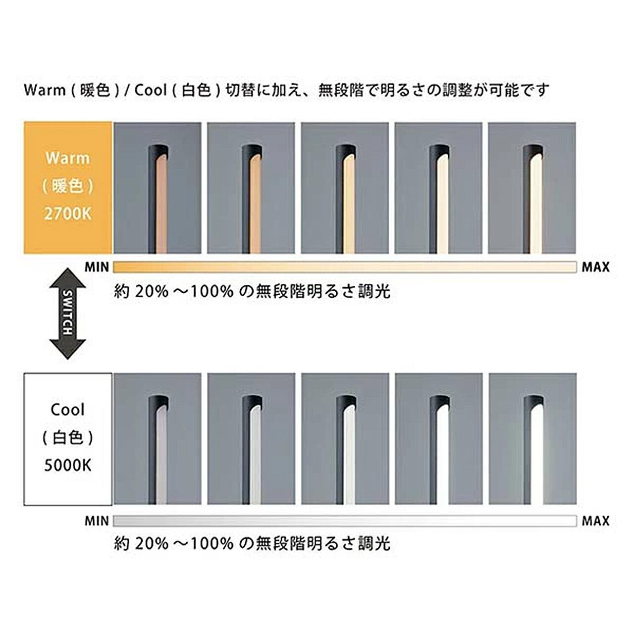■調光・調色:20%~100%無段階調光・調色 ※warm(暖色2700K) / 約1100lm、cool(白色5000K) / 約1500lm