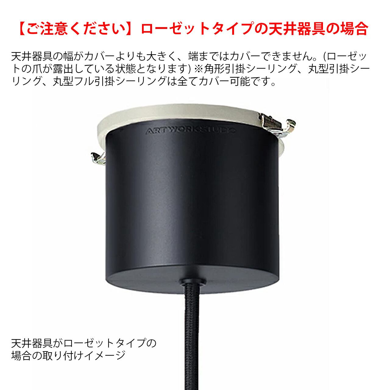 ■【ご注意(2)】取付個所の器具がローゼットタイプの場合、器具の幅がカバーよりも大きく、端まではカバーできません。(ローゼットの爪が露出している状態となります) 予めご了承ください。※角形引掛シーリング、丸型引掛シーリング、丸型フル引掛シーリングは全てカバー可能です。