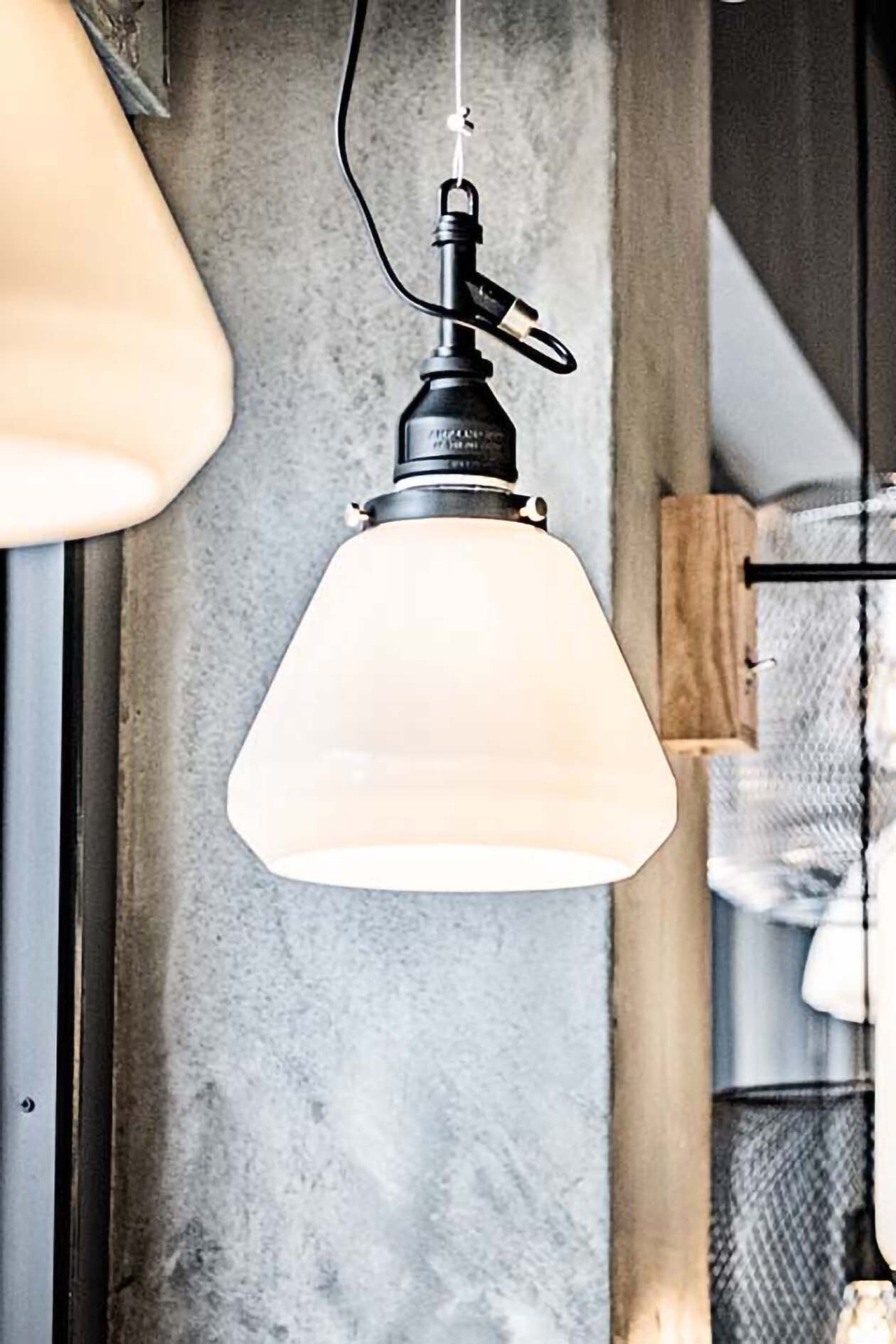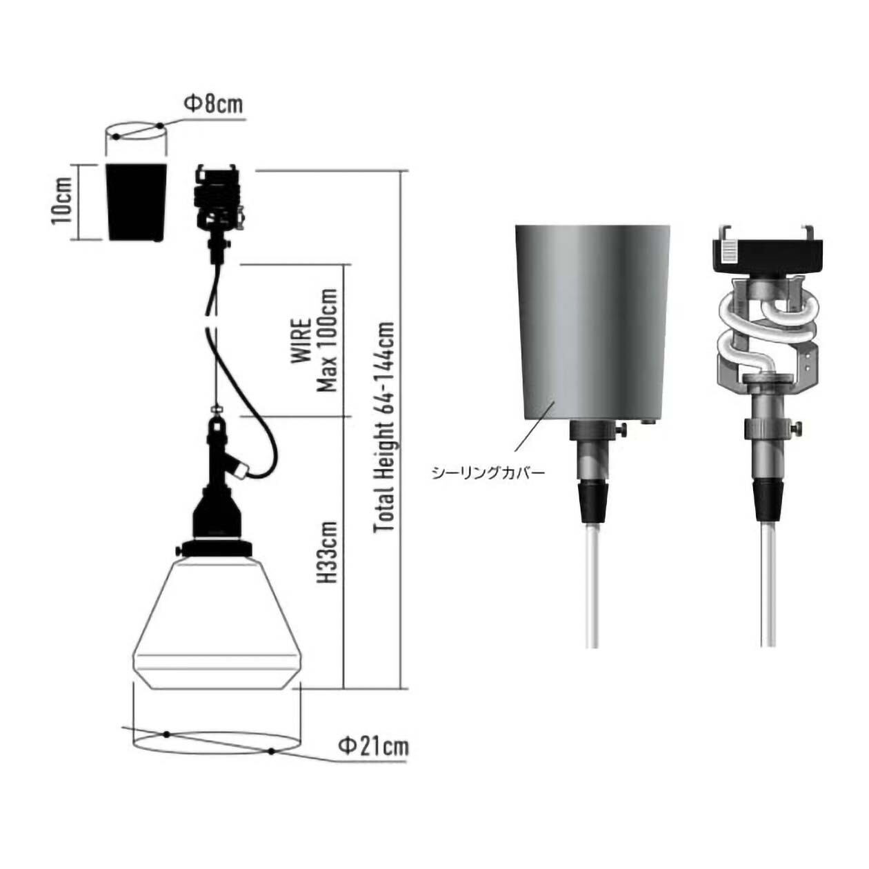アルミダイキャスト製のこだわり抜いたパーツのみで構成されたアシンメトリーなソケットユニットを使用し、アルミ色はクリアガラスと組み合わせレトロな雰囲気を。ブラック色は光沢あるホワイトガラスと組み合わせモノトーンな雰囲気を演出しています。小振りなエントランスやお手洗いなど単灯で使用しても良し、ダクトレールに多灯吊りすると雰囲気のあるショップのような演出に。※本製品は引掛けシーリング取付になります。ダクトレールへの取り付けは別途アダプタが必要です。
