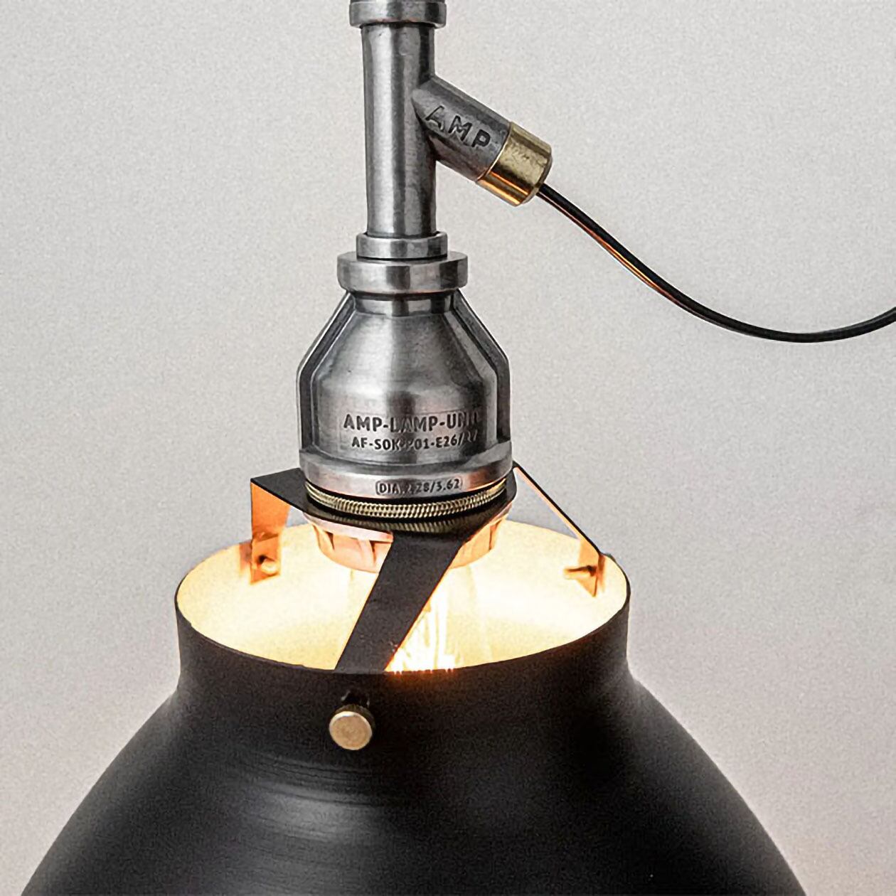 素材の特性を活かしラフに仕上げたアルミのヘアライン仕上げ。ブラックはマットに仕上げソケットとのコントラストが秀逸。