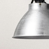 ヨーロッパの工場などで広く使用されていたインダストリアルランプに インスピレーションを受け生まれたアルミセード シリーズ。 セードはアルミの素材を生かしラフに仕上げたアルミのヘアライン仕上げです。ブラック色はマットに仕上げ、アルミダイキャスト製でシルバーに鈍く光るアシンメトリーなワイヤーソケットとのコントラストが一層のインダストリアル感を演出しています。少し小振りなスモールサイズは様々なシーンで活用でき、武骨なエッセンスを追加することができます。多灯吊りでショップのような雰囲気にも。