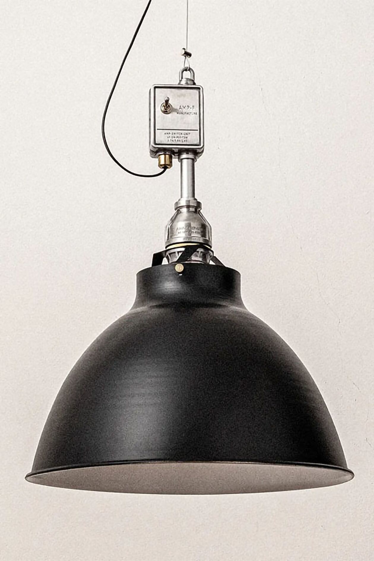 ヨーロッパの工場などで広く使用されていたインダストリアルランプに インスピレーションを受け生まれたアルミセード シリーズ。 セードはアルミの素材を生かしラフに仕上げたアルミのヘアライン仕上げです。ブラック色はマットに仕上げ、アルミダイキャスト製でシルバーに鈍く光るスイッチソケットソケットとのコントラストが一層のインダストリアル感を演出しています。手ごろなミディアムサイズはギミックを加えたスイッチソケットと相まって様々なシーンで活用でき、武骨なエッセンスを追加することができます。多灯吊りでショップのような雰囲気にも。