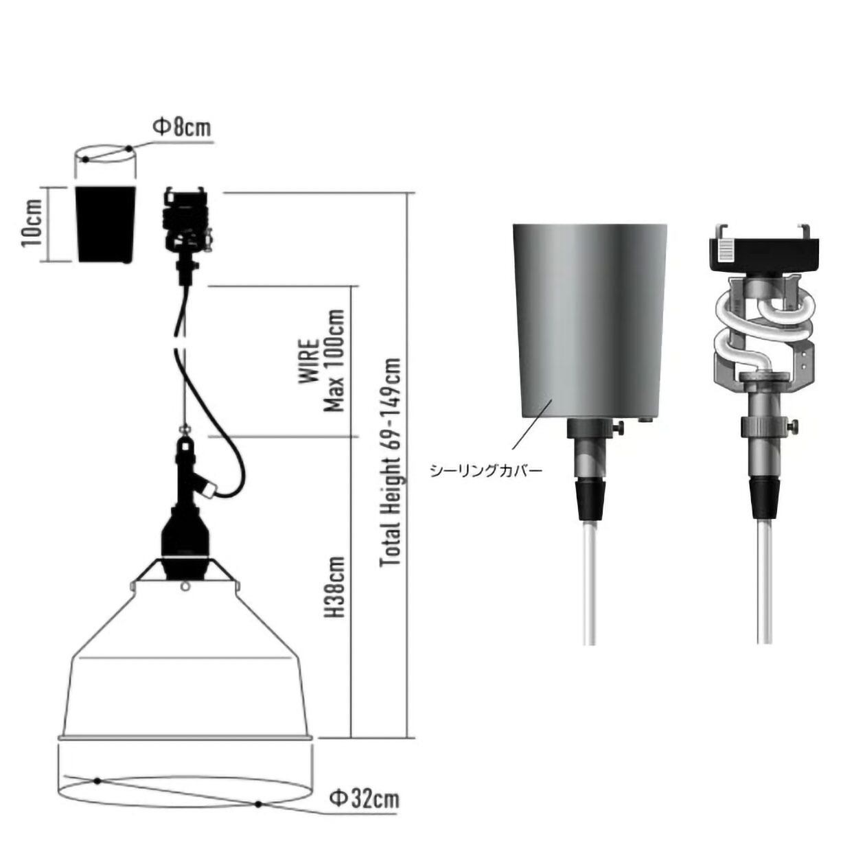 プラグ部分にはコードの長さを調整した際に余ったコードやワイヤーをスッキリと収納する工夫があります。またシーリングカバーは取り外しが可能で、お客様の好みによってお選びいただけます。※シーリングカバーの色はソケットと同系色となります。