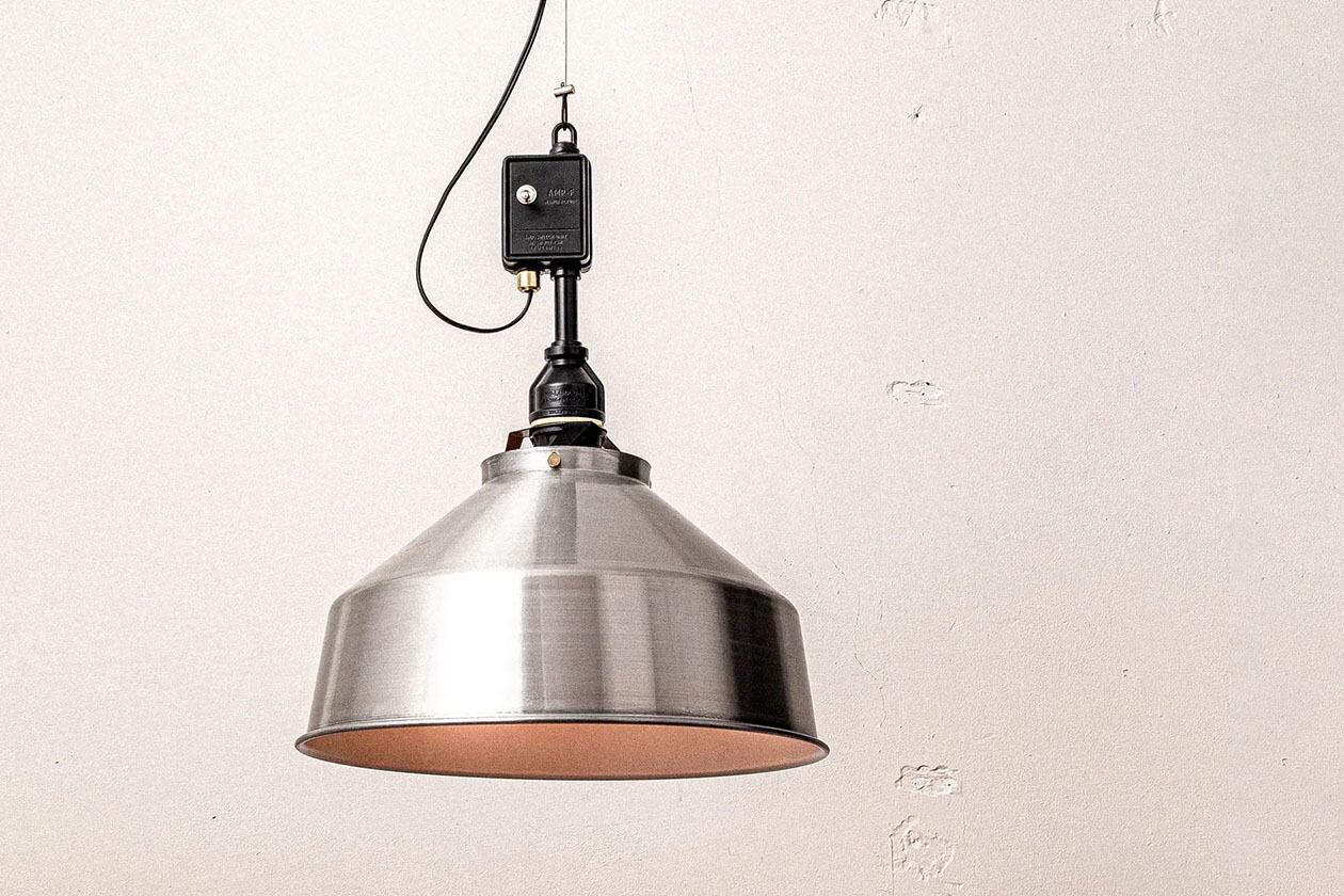 ヨーロッパの工場などで広く使用されていたインダストリアルランプに インスピレーションを受け生まれたアルミセード シリーズ。 セードはアルミの素材を生かしラフに仕上げたアルミのヘアライン仕上げです。ブラック色はマットに仕上げ、アルミダイキャスト製でスイッチボックスでのギミックを備えた鈍く光るソケットとのコントラストが一層のインダストリアル感を演出しています。程よいサイズ感のミディアムは様々なシーンで活用でき、武骨なエッセンスを追加することができます。多灯吊りでショップのような雰囲気にも。