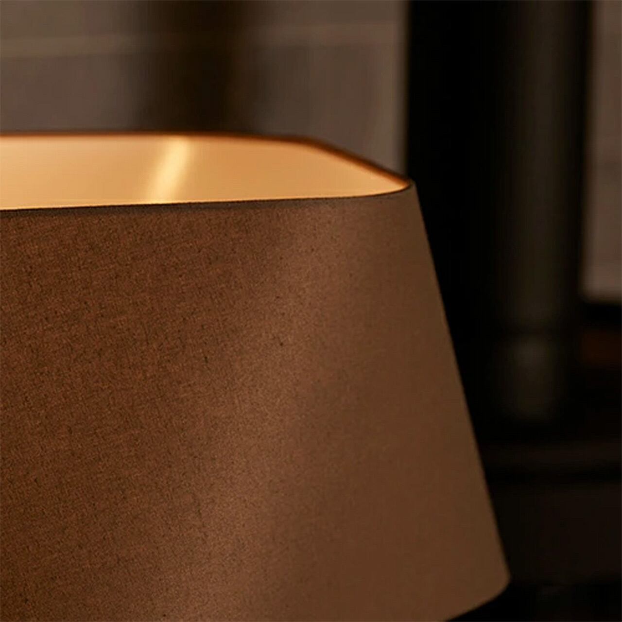 魅力ある「Espresso」シリーズの新たなシェード 「Espresso 3」のフロアランプ。上下に配する柔らかな四角形のシェイプ位置を45度ずらして設計することで、これまでに無い不思議なフォルムのシェードに仕上がりました。一見スタンダードな台形のシェードと思いきや、見る角度や場所によってスタイルが変化し様々な表情を魅せてくれます。同シリーズをお部屋や空間で揃えて使用することでトータルコーディネートをお楽しみいただけます。