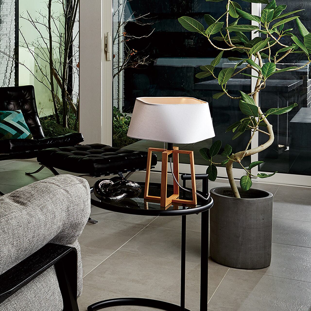 魅力ある「Espresso」シリーズの新たなシェード 「Espresso 3」のデスクランプ。上下に配する柔らかな四角形のシェイプ位置を45度ずらして設計することで、これまでに無い不思議なフォルムのシェードに仕上がりました。一見スタンダードな台形のシェードと思いきや、見る角度や場所によってスタイルが変化し様々な表情を魅せてくれます。同シリーズをお部屋や空間で揃えて使用することでトータルコーディネートをお楽しみいただけます。