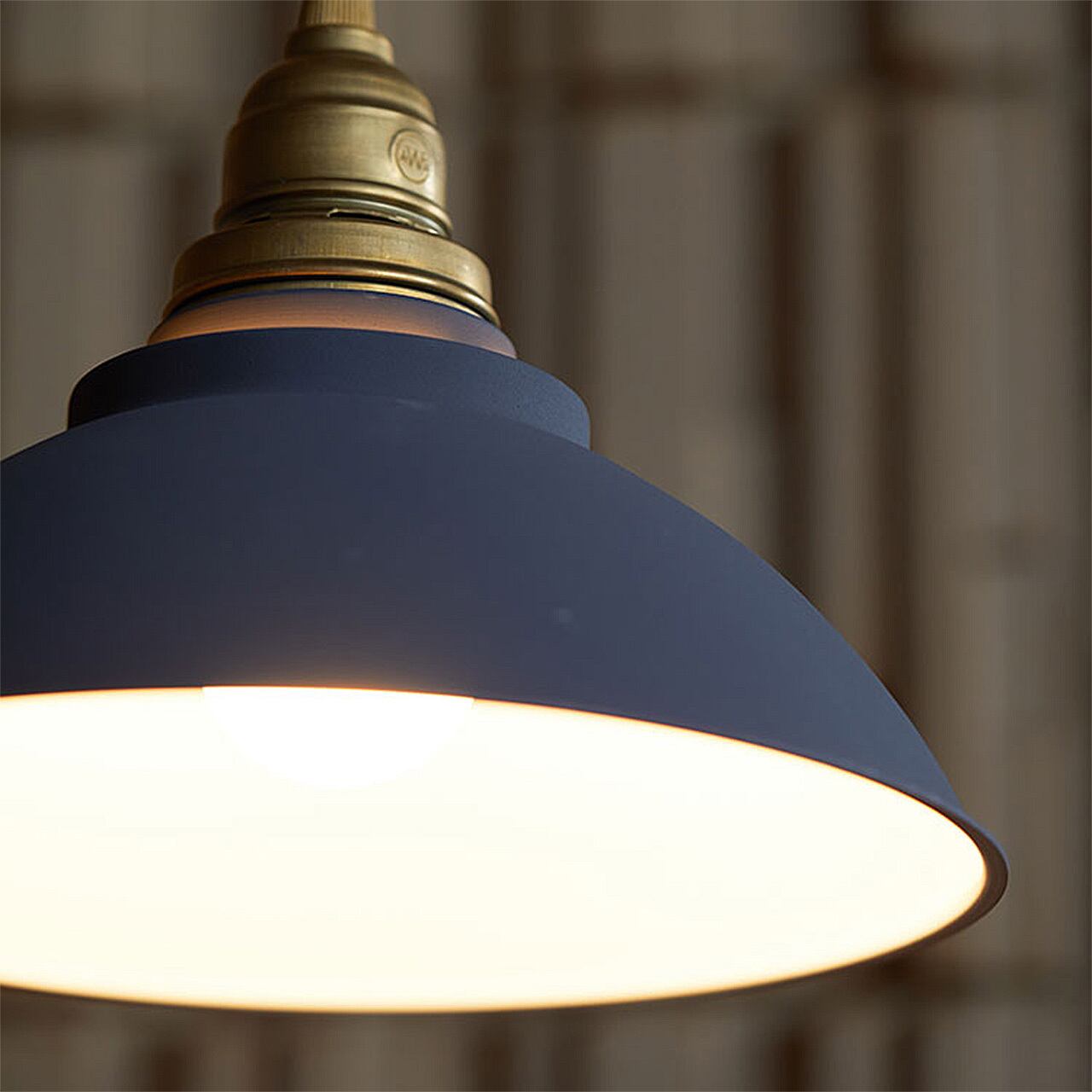 少し小振りなペンダント照明はアートワークスタジオの定番スタイル。扱い易いシンプルなデザインながら真鍮製のソケットやシェードにはマット塗装+梨地仕上げを施し、より上質に仕上げました。ナチュラルスタイル、カフェスタイル、ビンテージスタイル、北欧スタイルなど、どんなインテリアにもしっくり溶け込みます。■最大消費電力 60W(60W×1)■スイッチ なし(壁スイッチでON/OFF)■取付方法 引掛シーリング式【使用電球について】蛍光球・LED電球に交換可能です。必ず指定の口金・ワット数・サイズをお選びの上ご利用ください【ご注意】傾斜天井への取り付けはできません。天井に対して垂直にご使用いただく仕様となっております。傾斜のある天井や、傾斜を合わせた船底天井にお使いいただくと故障の原因になります。