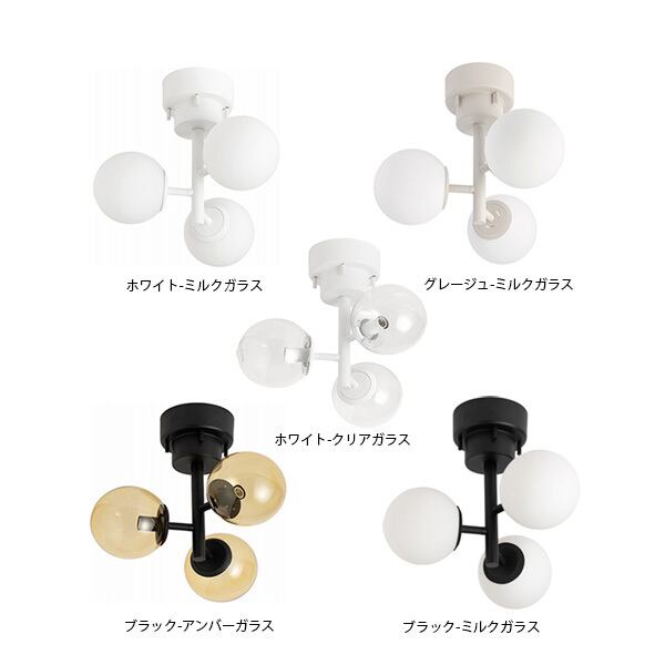 BRID ブリッド TINY GLASS CEILING LIGHT 3 タイニーグラスシーリングライト 3灯 (LED球付属) 003365 / シーリングランプ 天井直付照明 E17 40W相当×3灯 | UNLIMIT