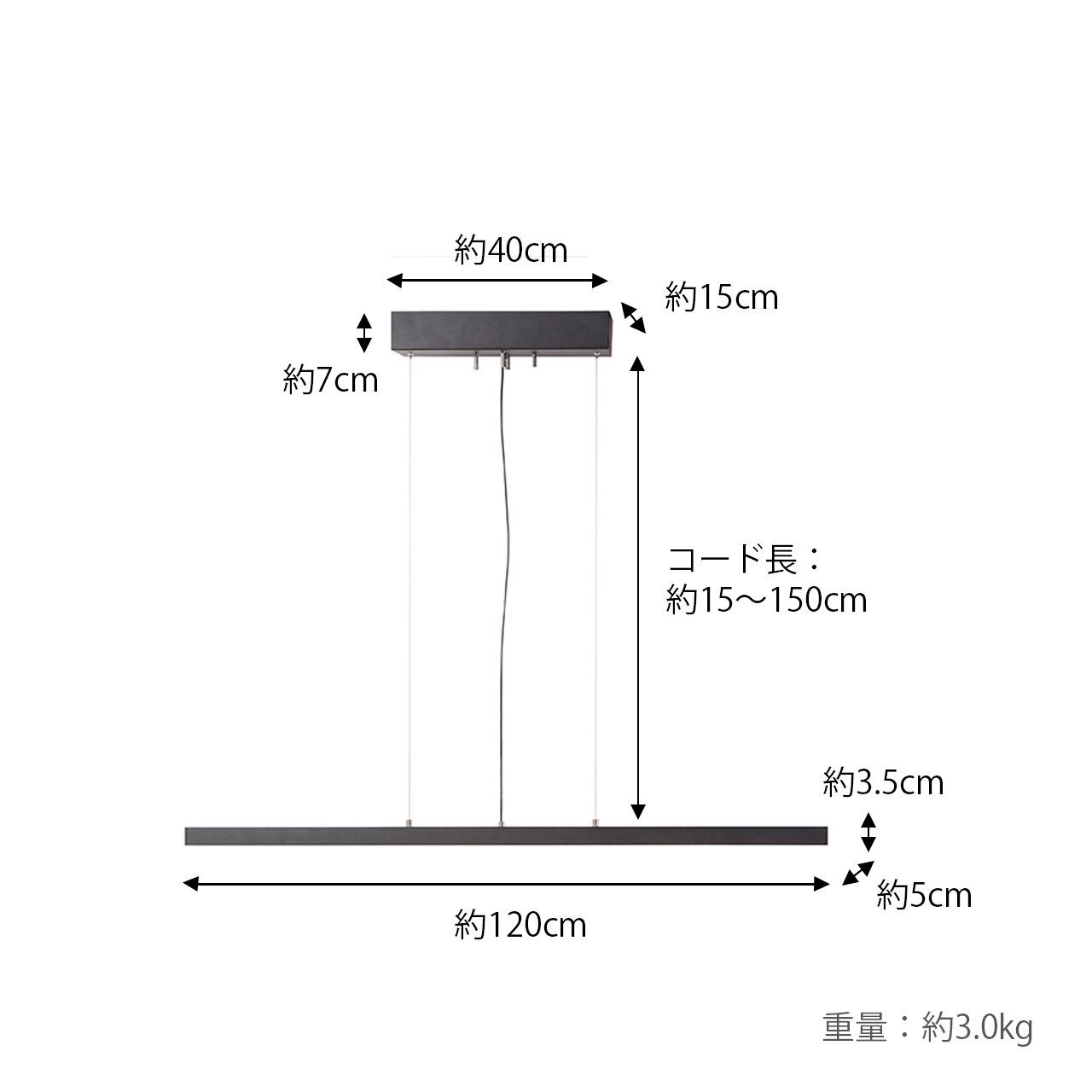 ■サイズ(約):本体W120 H3.5 D5 cm ( コード長:15~150 cm 調節可能)シーリングカバー:W40 D15 H7cm