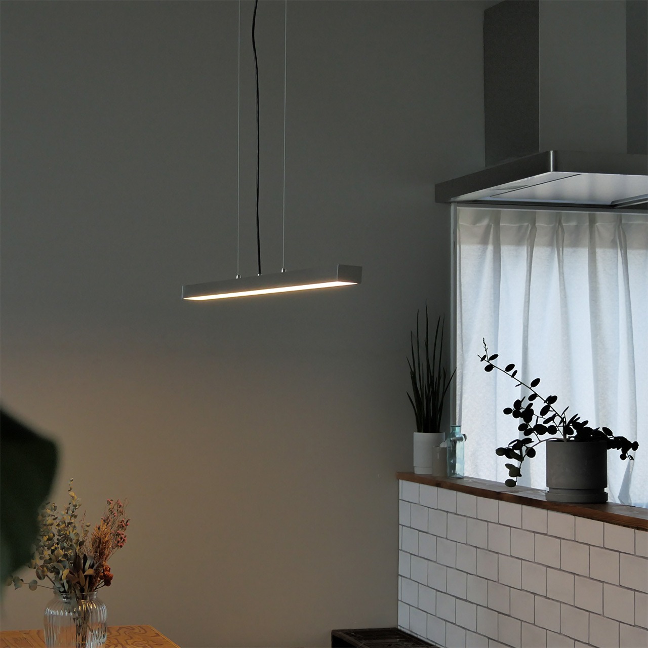 光源が浮いているイメージを具現化したペンダントライト。オフィスからダイニング・キッチンカウンターまで使えるように無駄を削ぎ取り、その場の空間の邪魔にならないようにスマートな形に仕上げました。コード15cm〜150cmの高さ調節も可能で、低めの照明配置設定も可能です。太陽光に近い色温度:5000K(昼白色)から、リラックスタイムに使える色温度2700K(電球色)まで、様々な環境で活躍します。
