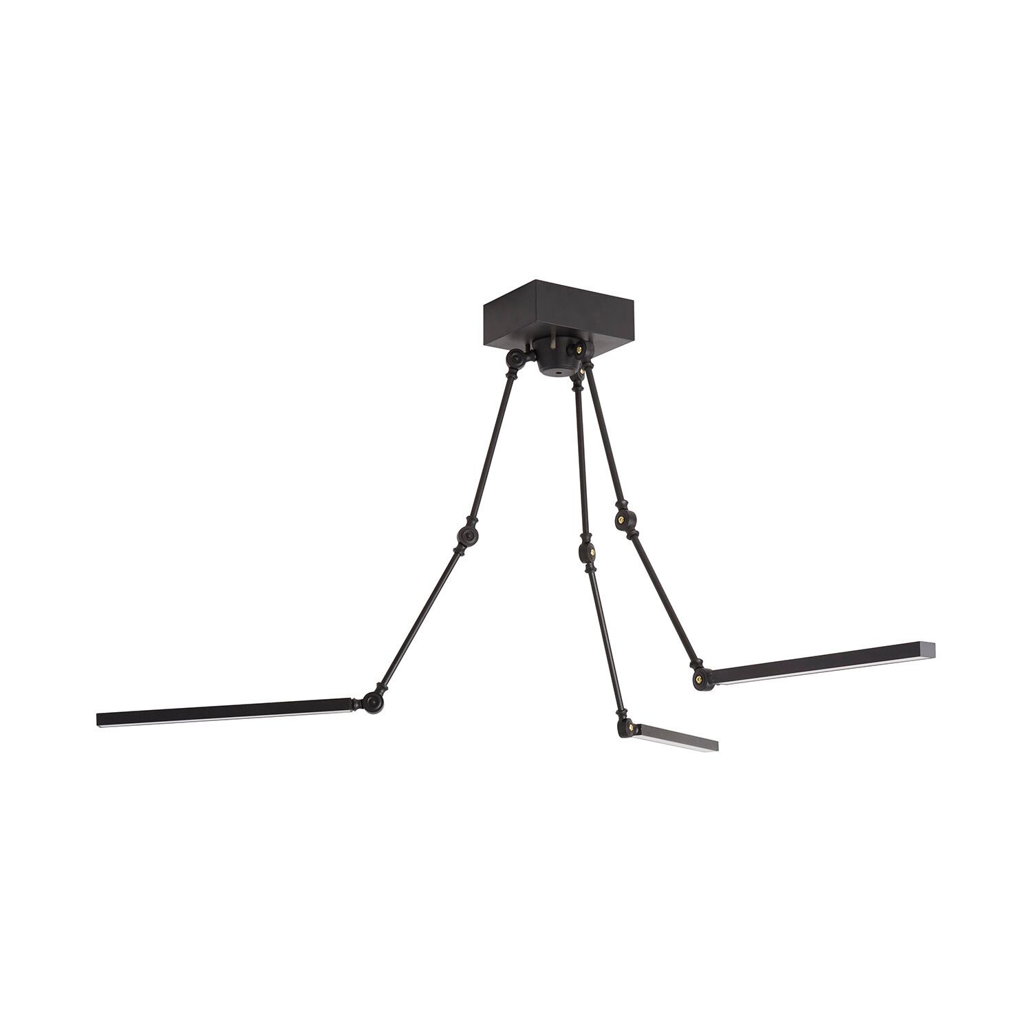 三方向に伸びるアームが天井空間に堂々と佇むLEDライト。独創的なフォルムのデザインでアームは可動式。自在に調節できる為、空間全体に灯りを拡げることはもちろん、スポットライトの様に必要な個所を照らせます。本体にはアルミ素材を使用し細身で上品な仕上げになっています。また、パーツには真鍮を使用するなど、ディテールにまで妥協のないデザイン。定番のカタチでは物足りない、こだわりがあるインテリアを取り入れたい方に。