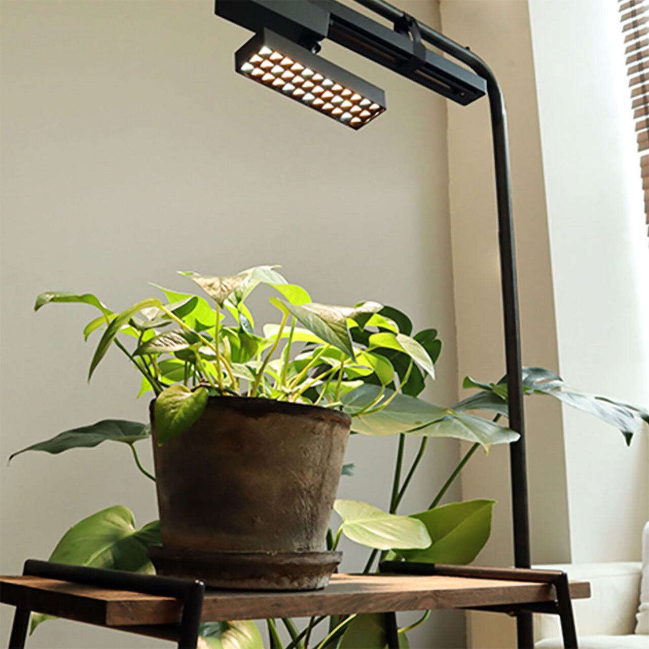 色の再現度が高く、人にも自然な明るさ / 演色性が高いため、自然光下に近い色合いが再現できます。日当たりの悪い場所でも、ダクトレールに取り付けて植物が光合成に必要な光を届けられるスポットライト。太陽光に近い自然な光が植物の生長や健康維持を促します。照射部分のレンズは光を拡散させることで植物育成用の電球よりも広範囲を照らせるため、壁面緑化にも適しています。照明は角度調整が可能なので、日々の環境や育成状況によって変わる植物の様子に合わせて、光が必要な場所を必要な分だけ照らせます。光の色味はWARM/COOLからお選びいただけます。