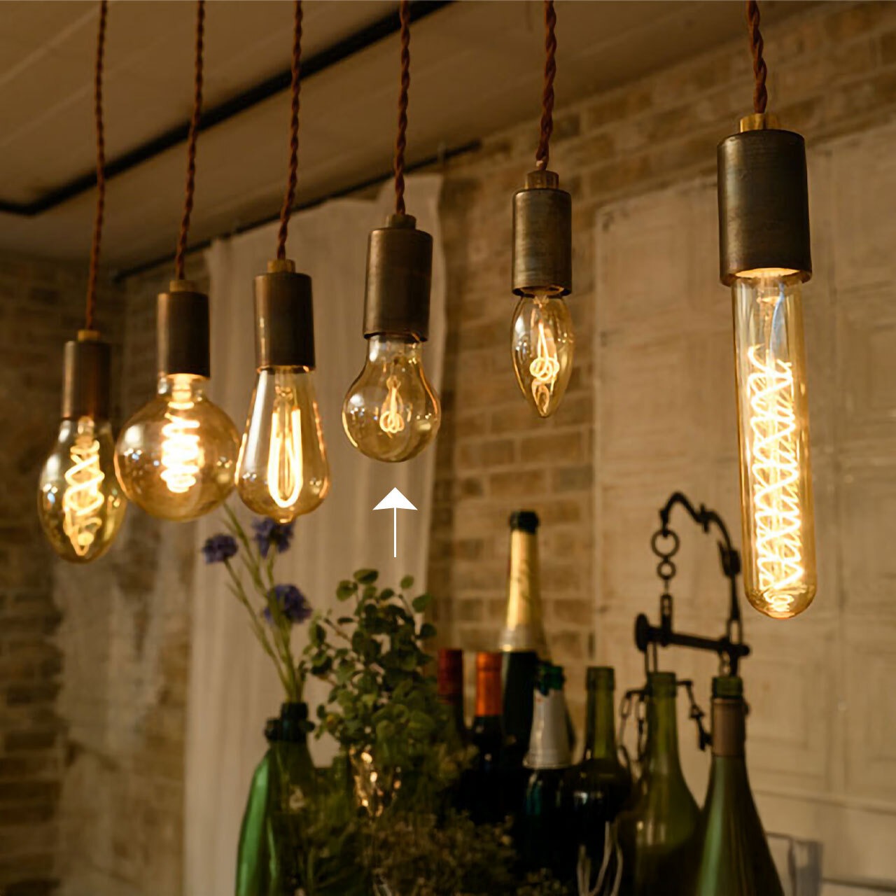 白熱灯のような美しいフィラメントをLEDで再現。キャラクター溢れる6種類のヴィンテージ電球。電球が発明された当時を思い出させるようなオレンジの光。100年前の電球が今まさにLEDで完全復刻。