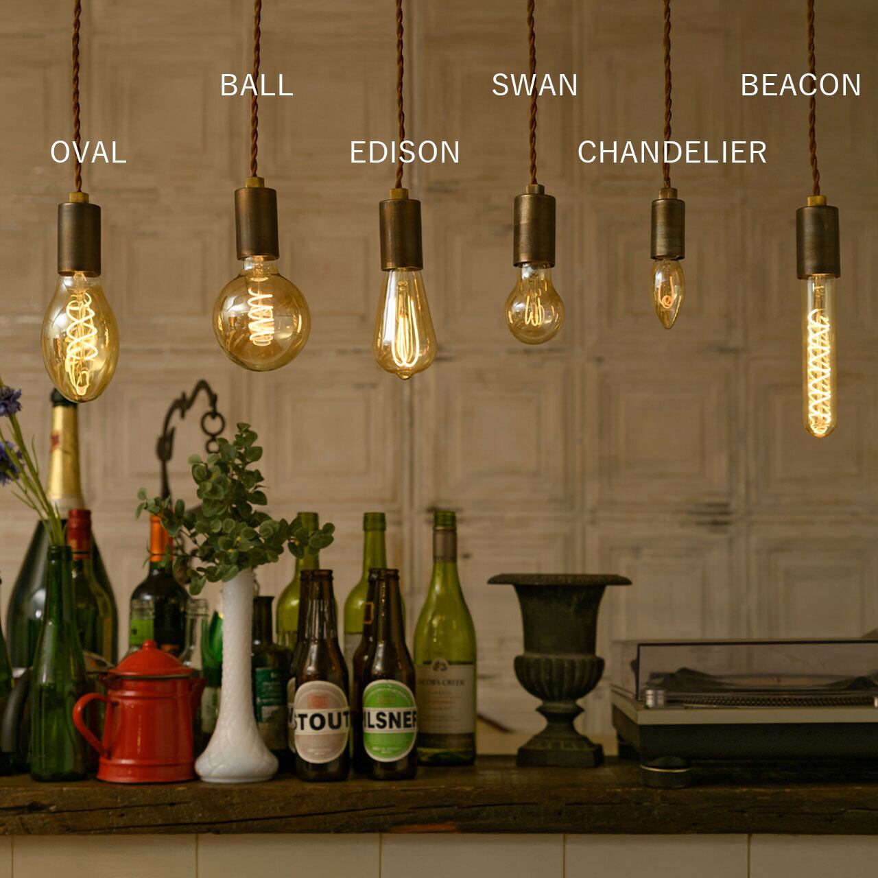 白熱灯のような美しいフィラメントをLEDで再現。キャラクター溢れる6種類のヴィンテージ電球。電球が発明された当時を思い出させるようなオレンジの光。100年前の電球が今まさにLEDで完全復刻。