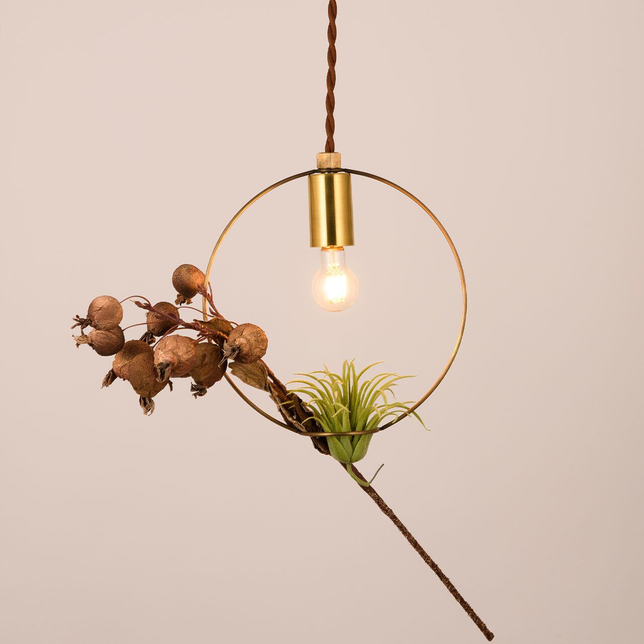 北欧のインテリアにあるような印象的なリングにライトを追加。デザインコンセプトは「北欧のインテリア」。北欧インテリアで見かけるようなリング状のデザイン要素をペンダントライトに組み込みました。シンプルながら存在感と象徴的なイメージに仕上がっています。インテリアにアートな雰囲気を演出。プランターやグリーンを飾ってお部屋のアクセントに。マットなゴールド色のスチールが独特の雰囲気。ビンテージ感とモダンな雰囲気、どちらも感じられるようなデザイン。